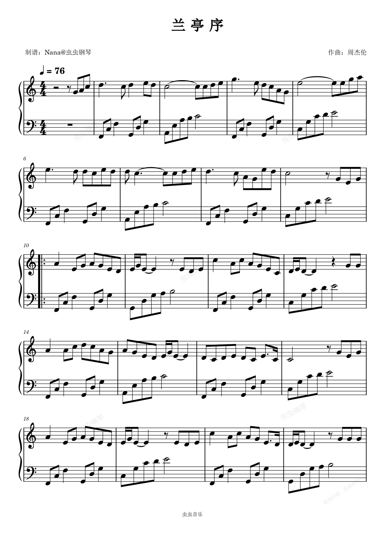 钢琴谱:兰亭序-周杰伦 C大调简易版