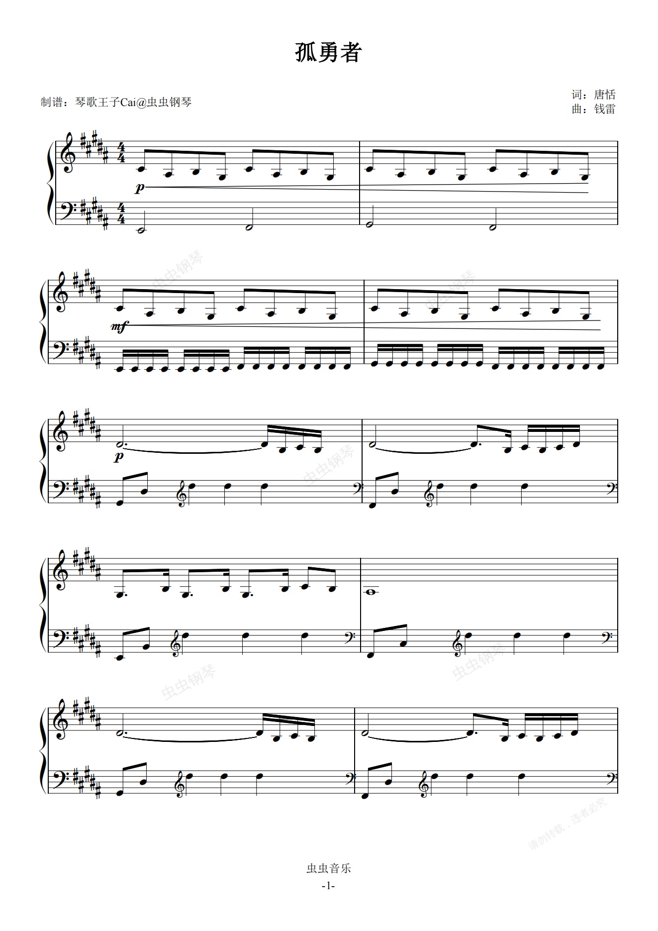 钢琴谱:孤勇者(琴歌王子Cai钢琴版)原调