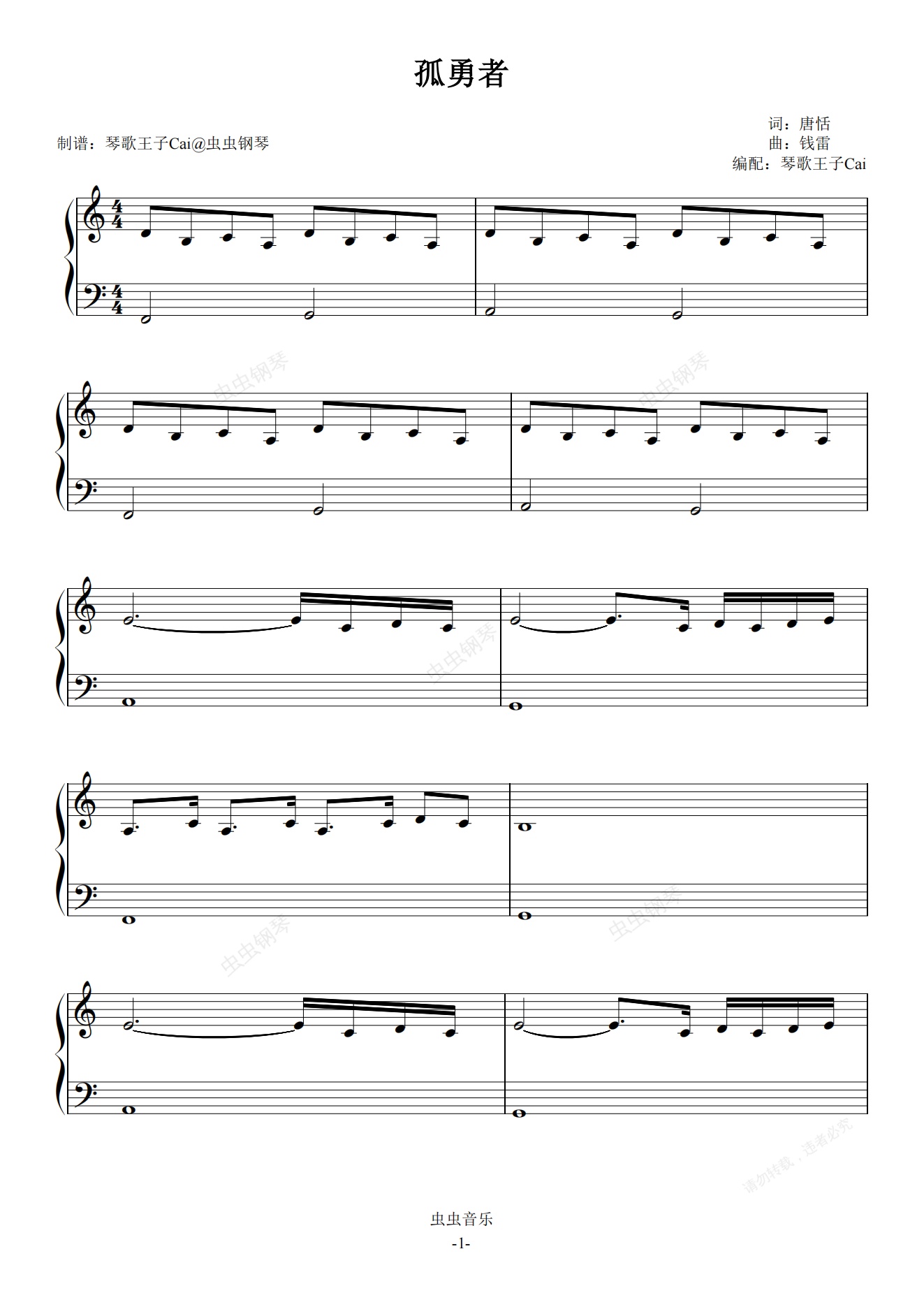 钢琴谱:孤勇者(入门版)