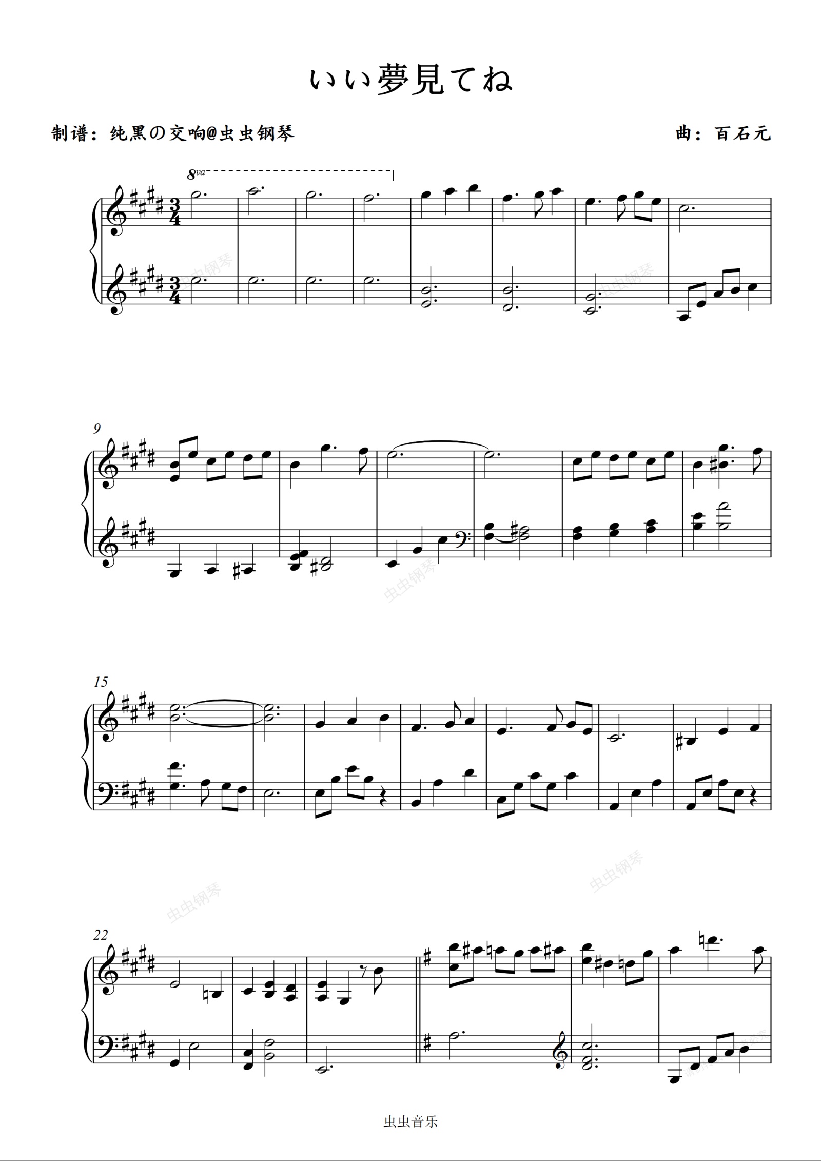 钢琴谱:いい夢見てね(做个好梦吧)-《K-ON 轻音少女》