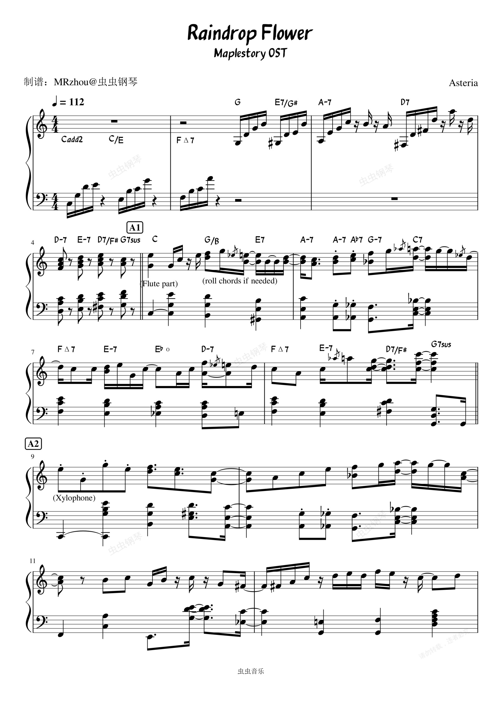 钢琴谱:《Raindrop Flower》 - 冒险岛游戏经典音乐