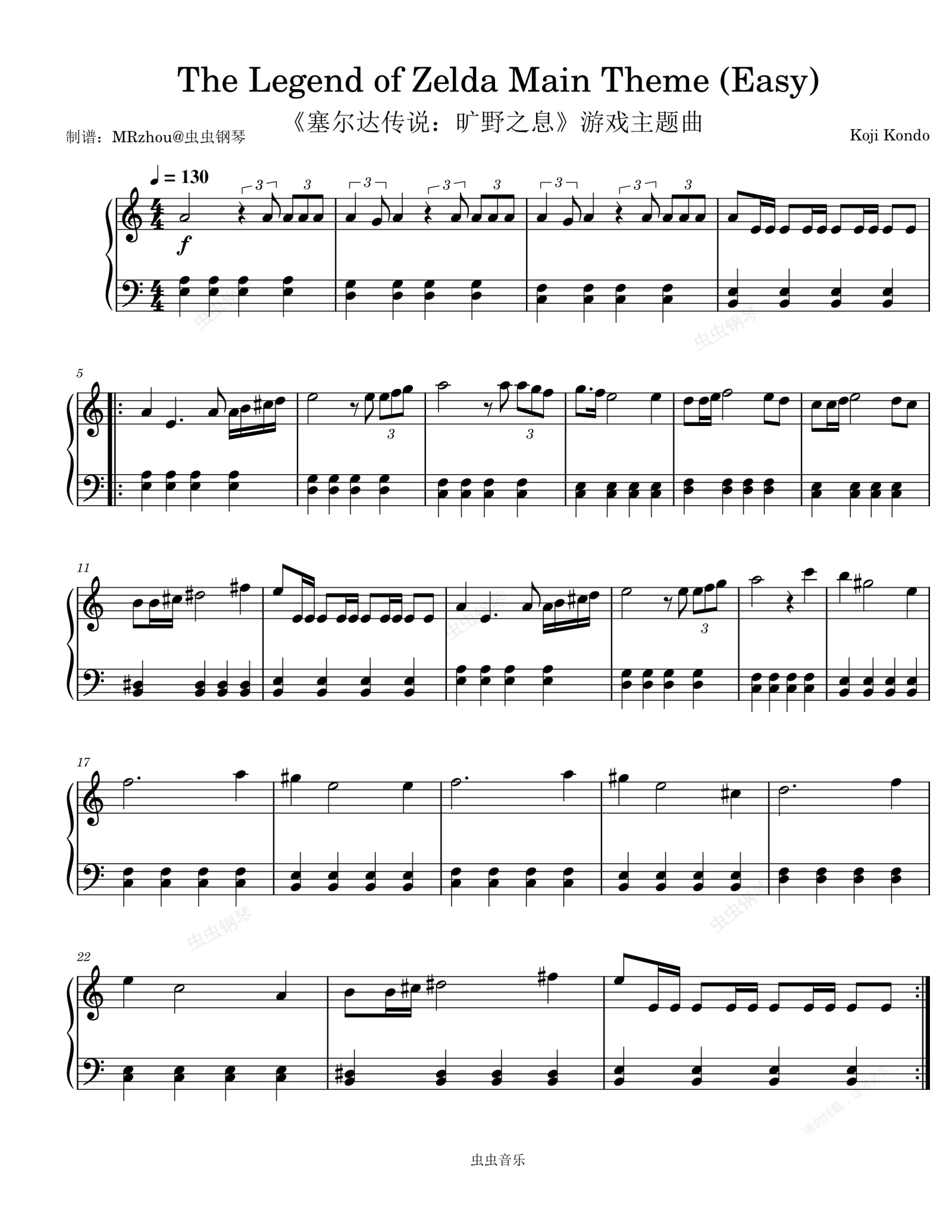 钢琴谱:The Legend of Zelda Main Theme (Easy) - 《塞尔达传说:旷野之息》游戏主题曲