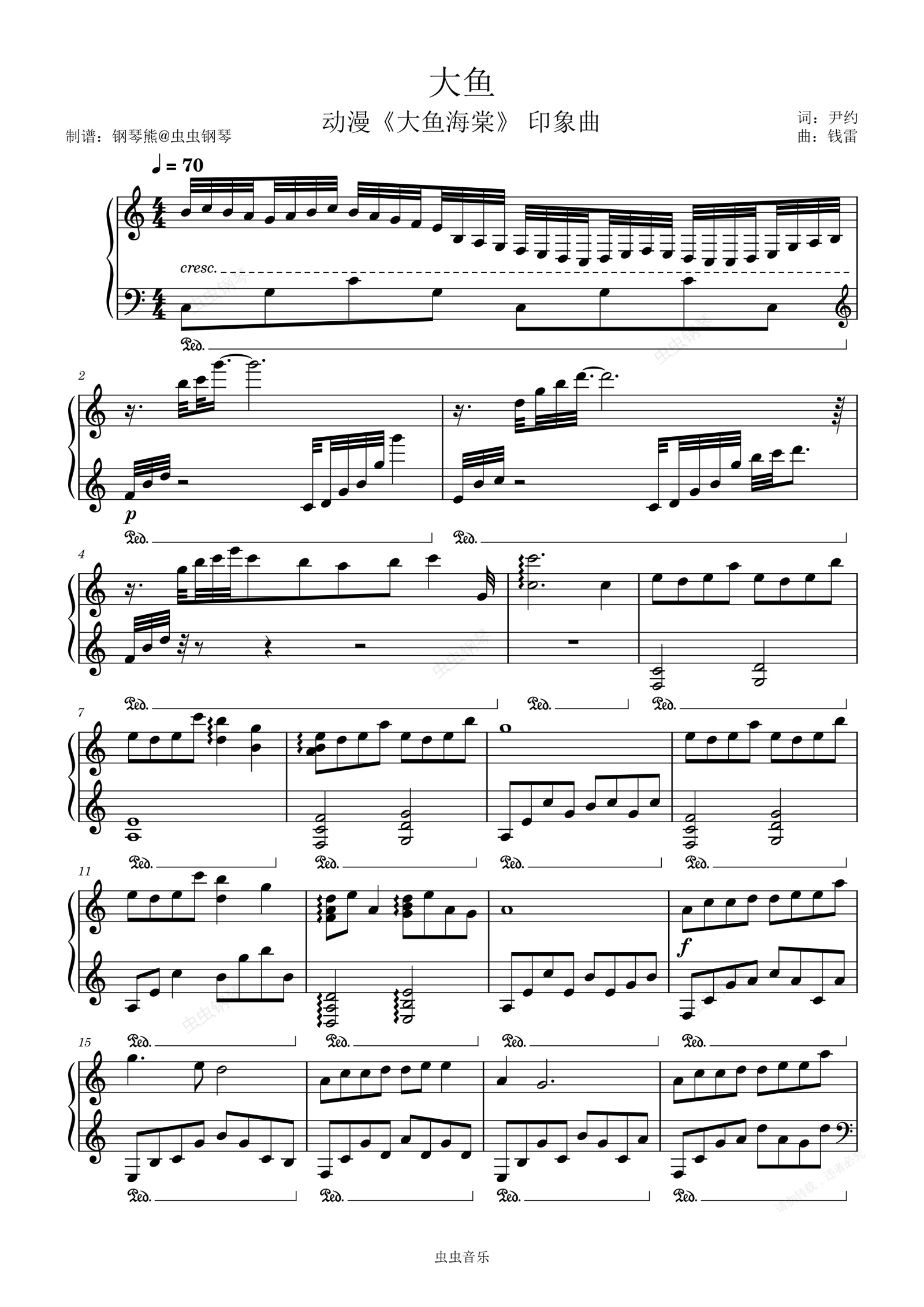 钢琴谱:《大鱼海棠》先难后易版~