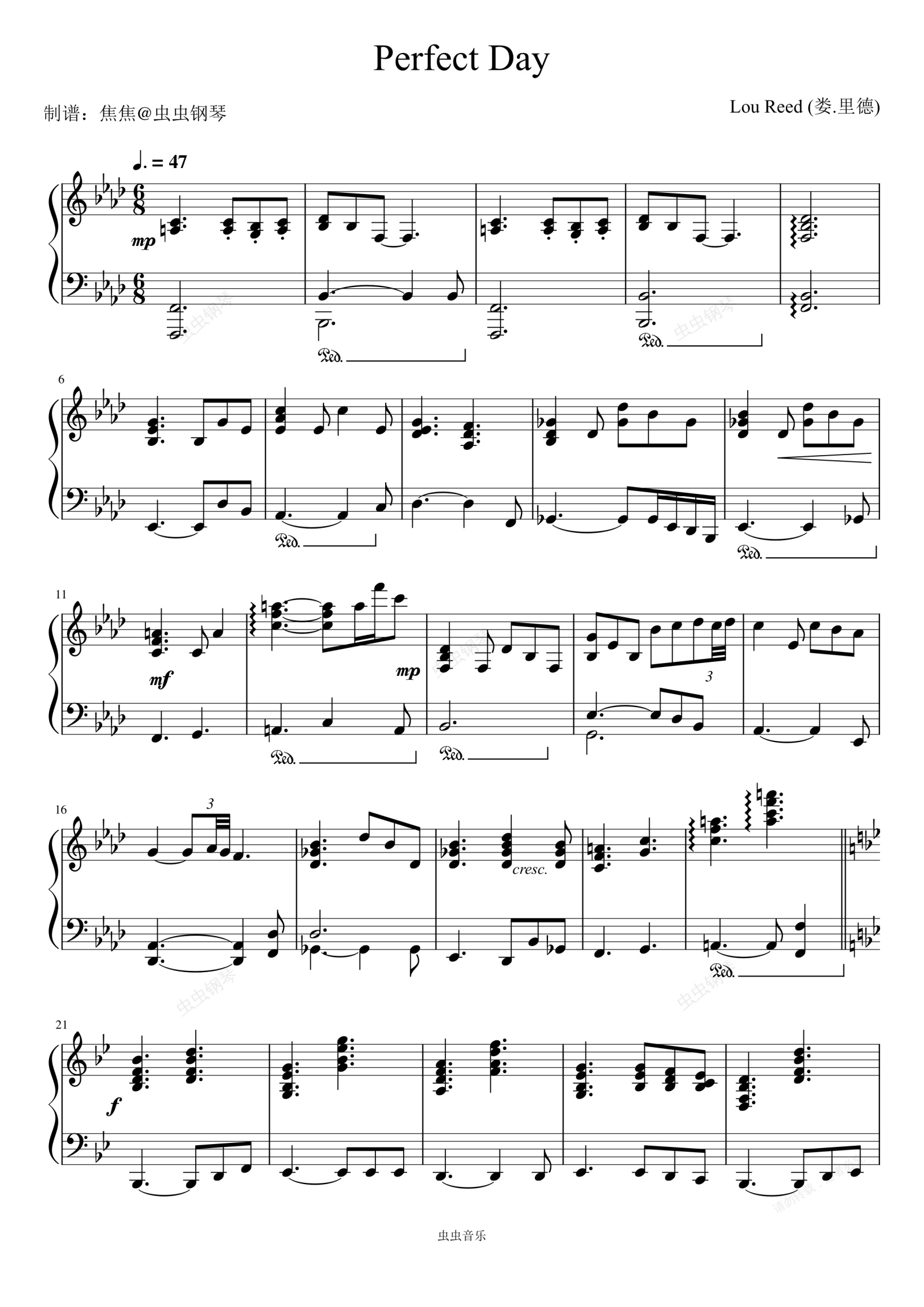 钢琴谱:Perfect Day - Lou Reed (娄.里德)