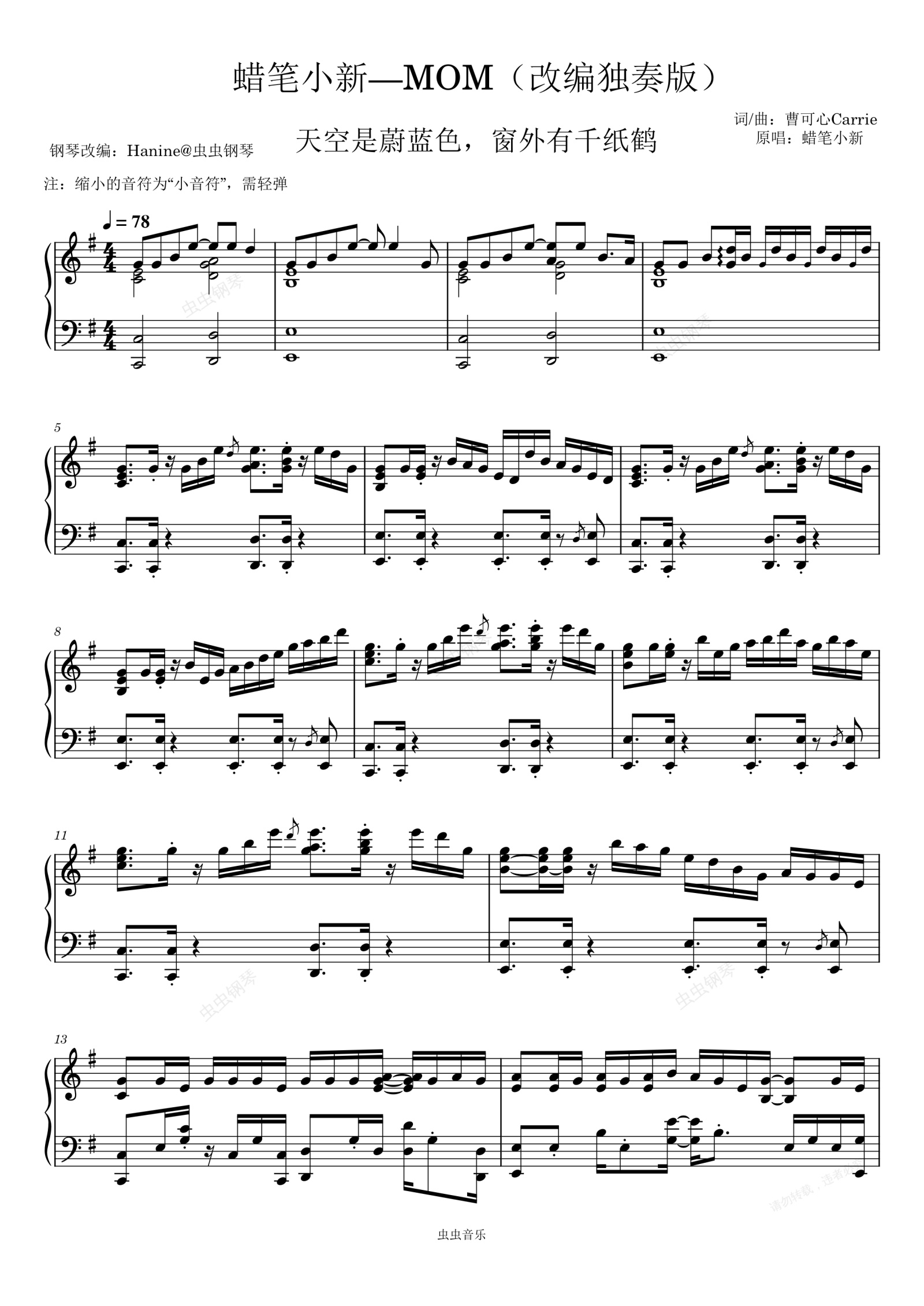 钢琴谱:蜡笔小新《MOM》改编独奏版—Hanine编配