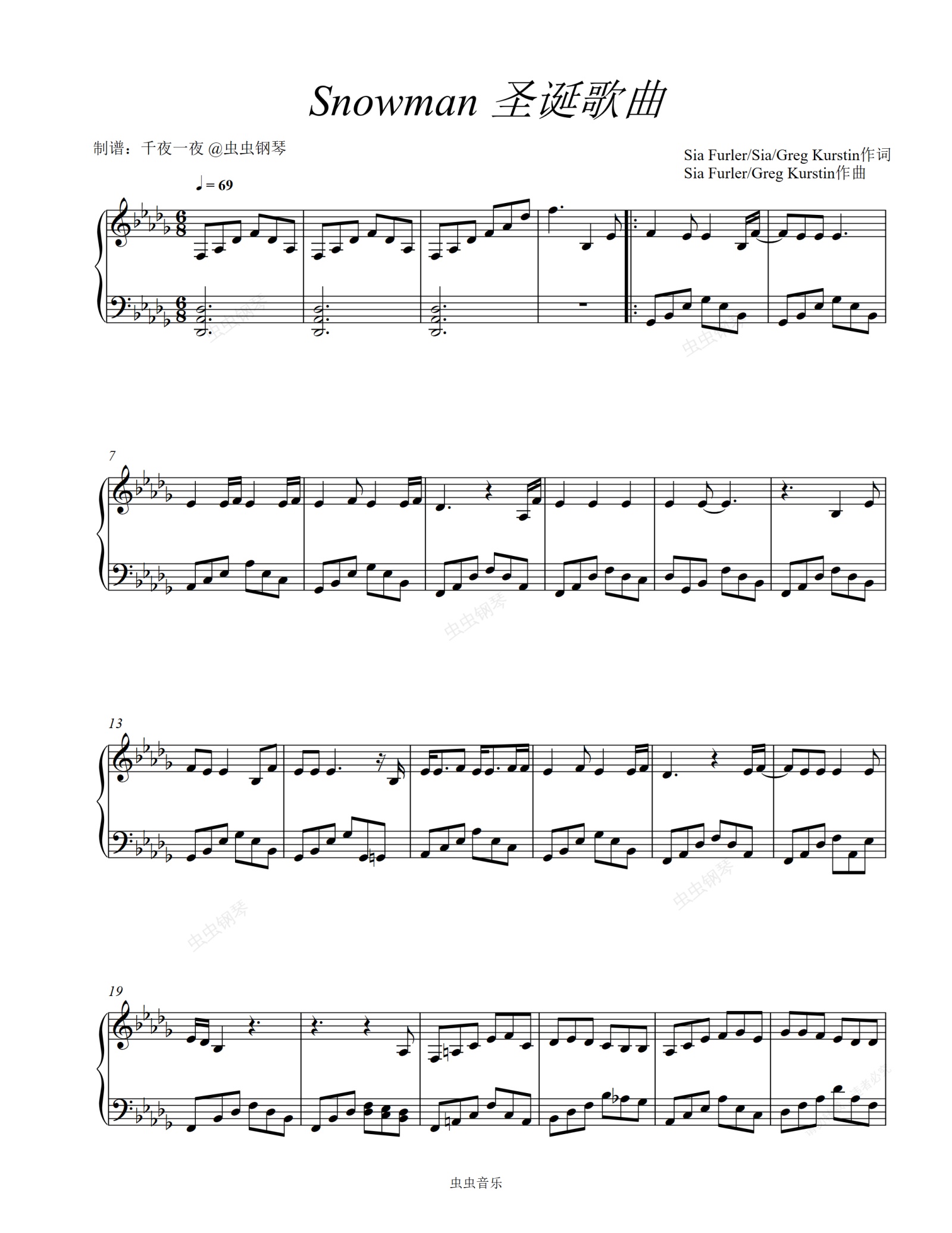钢琴谱:Snowman-简单好听版-圣诞歌曲-