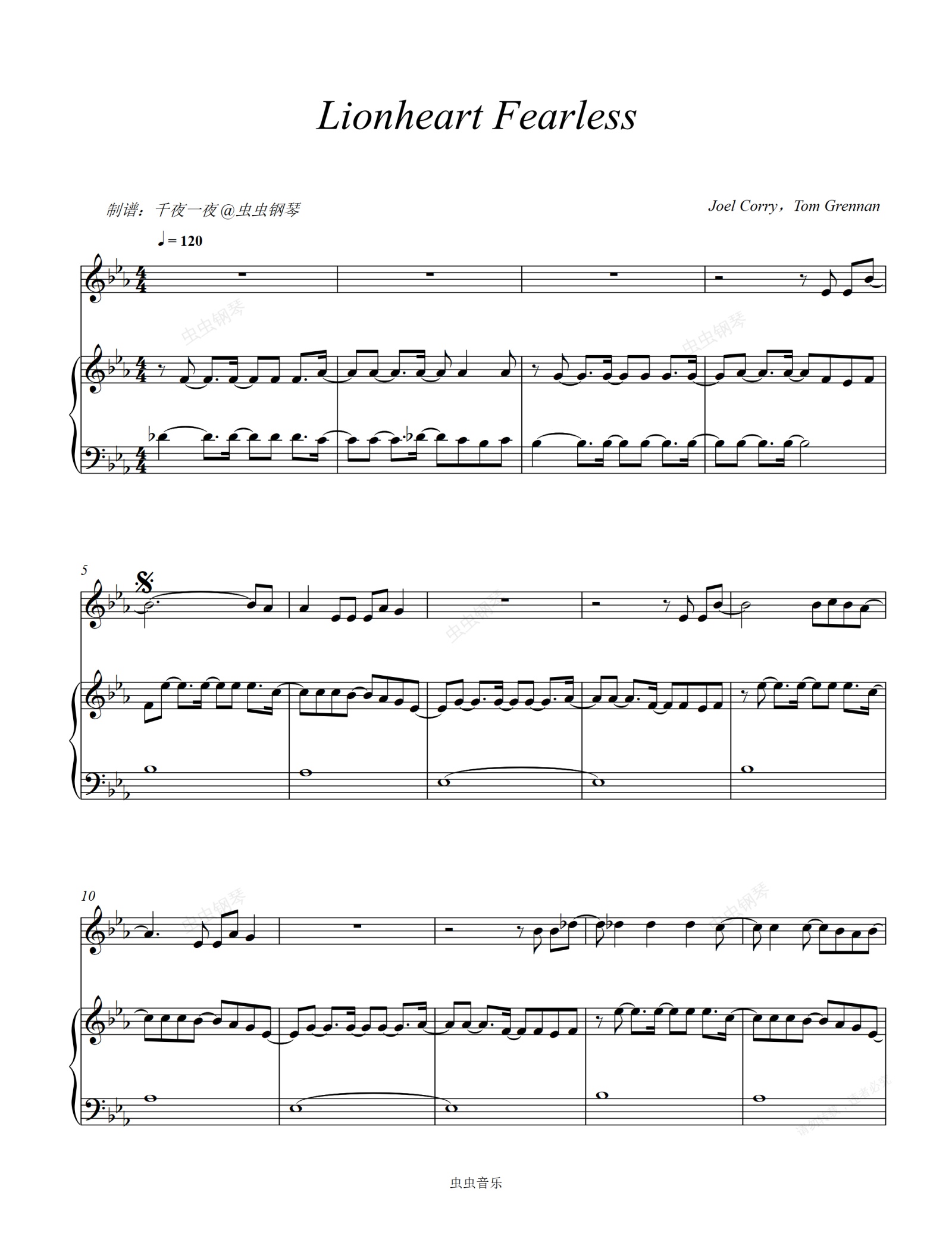钢琴谱:Lionheart-Fearless-Joel-Corry-ft-Tom-Grennan-