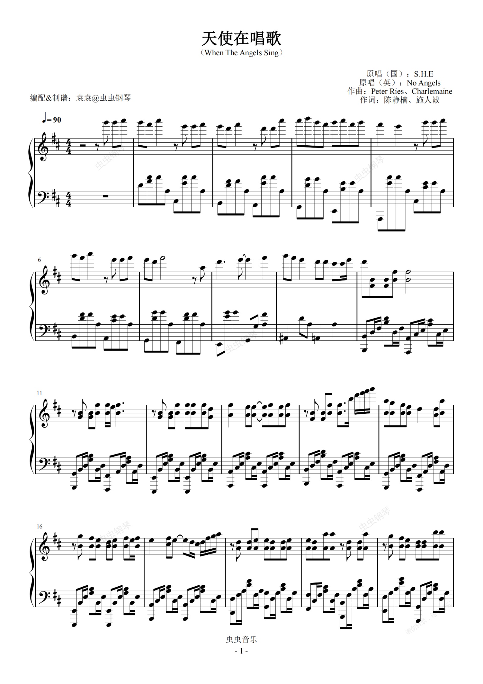 钢琴谱:天使在唱歌 S.H.E 完美演奏版 原调