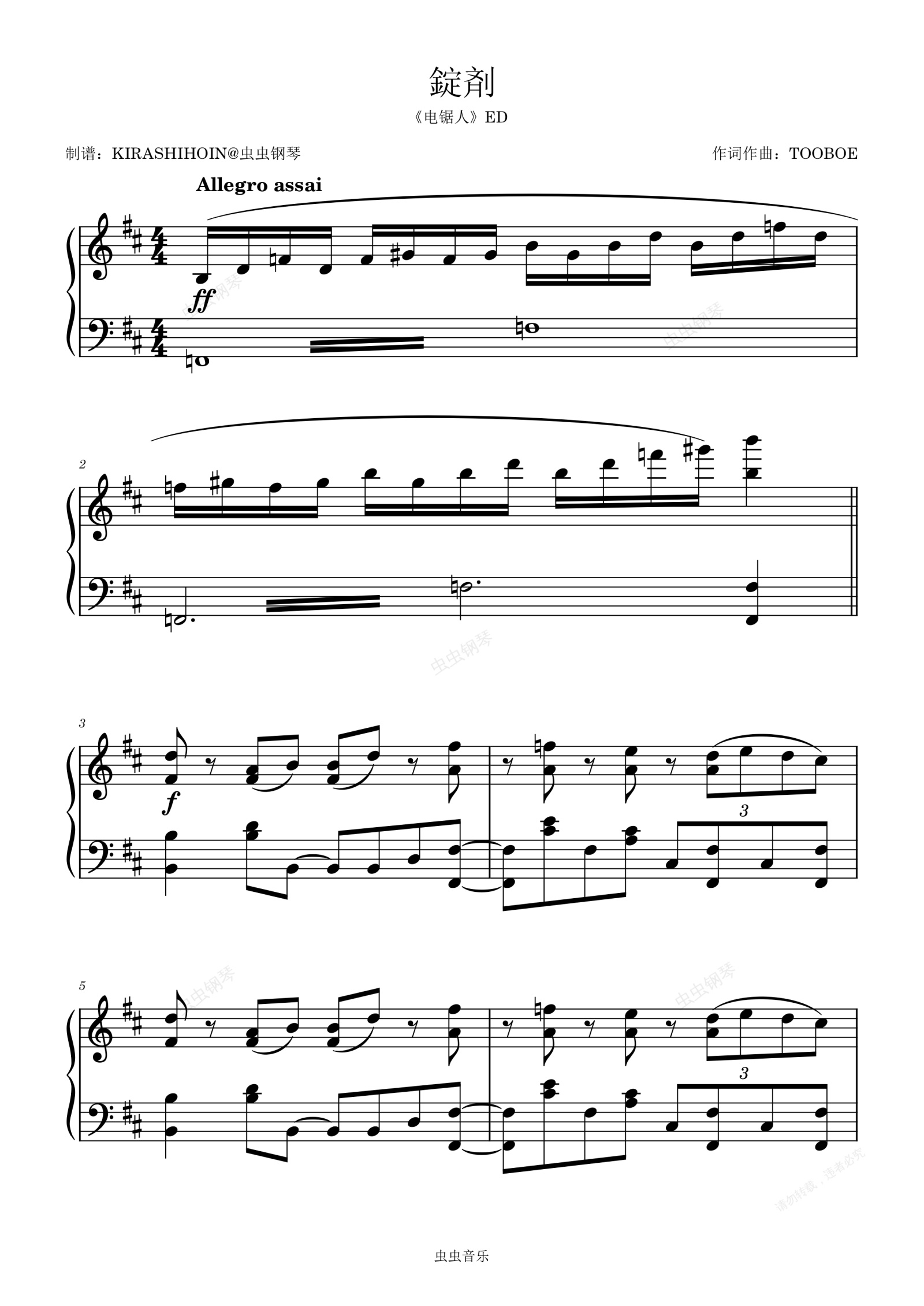 钢琴谱:錠剤(《电锯人》ED/片尾曲)- TOOBOE
