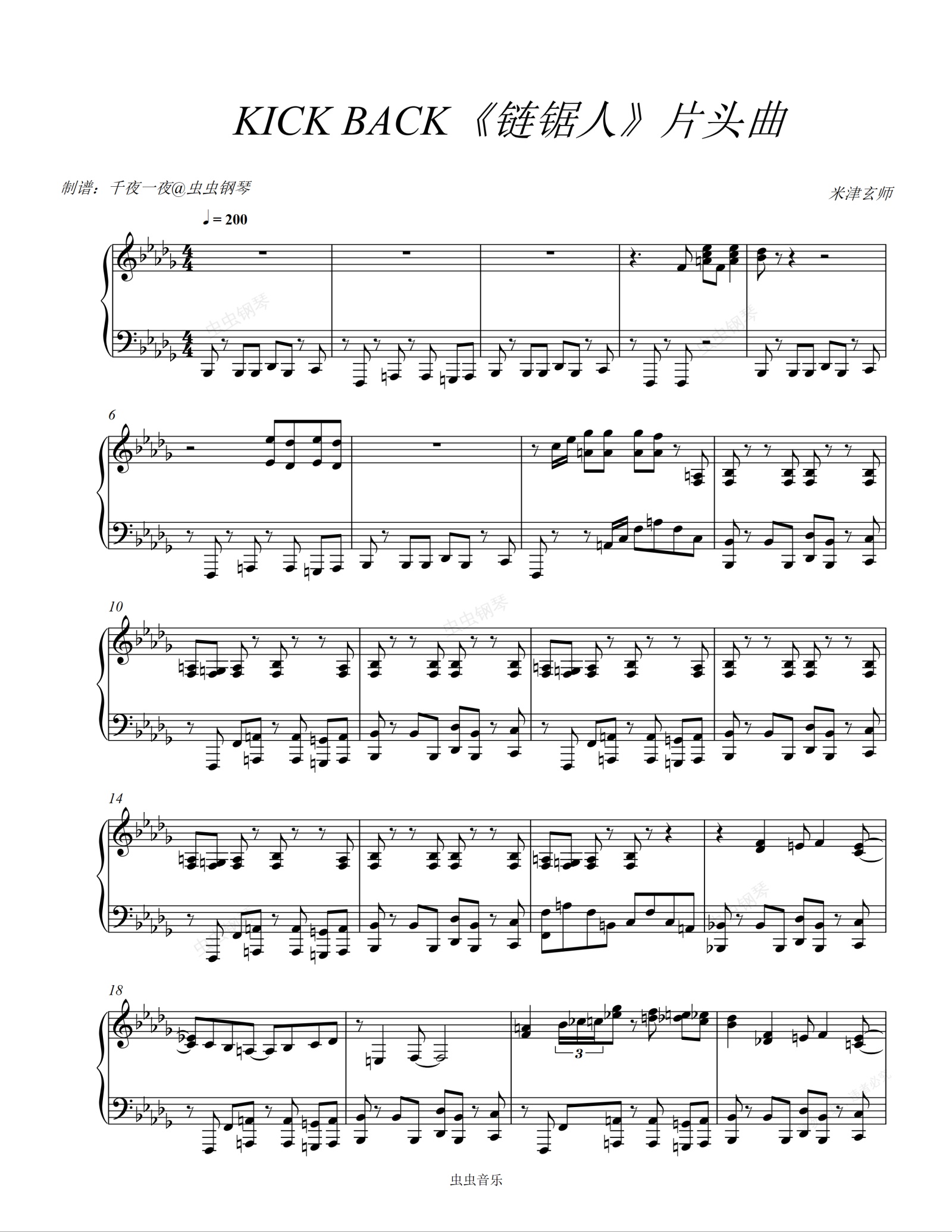 链锯人亲自上阵啦】链锯人OP「KICK BACK / 米津玄师」完整版钢琴演奏 Ru's Piano Cover【乐谱】