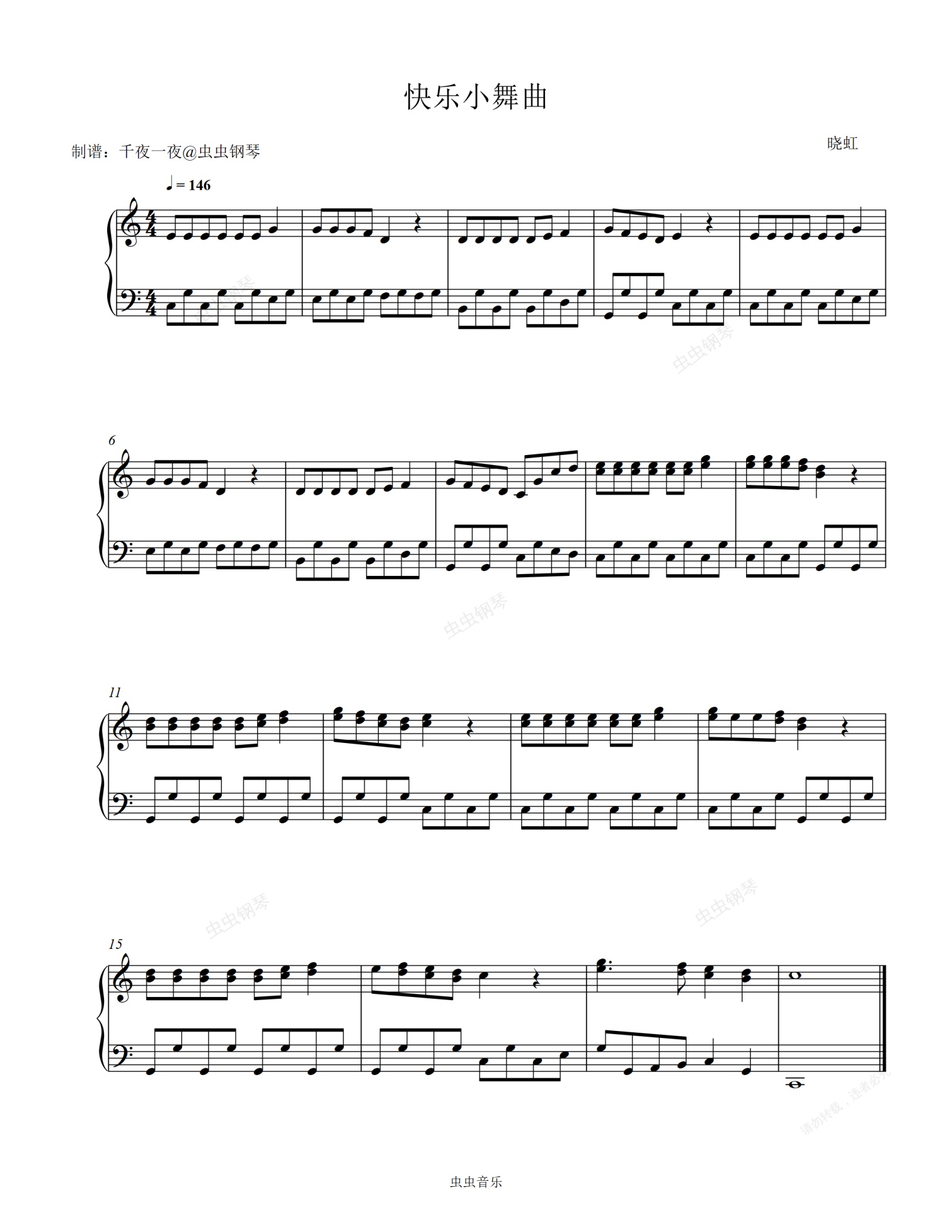 钢琴谱:人教版小学音乐一年级下册《快乐小舞曲》简易钢琴