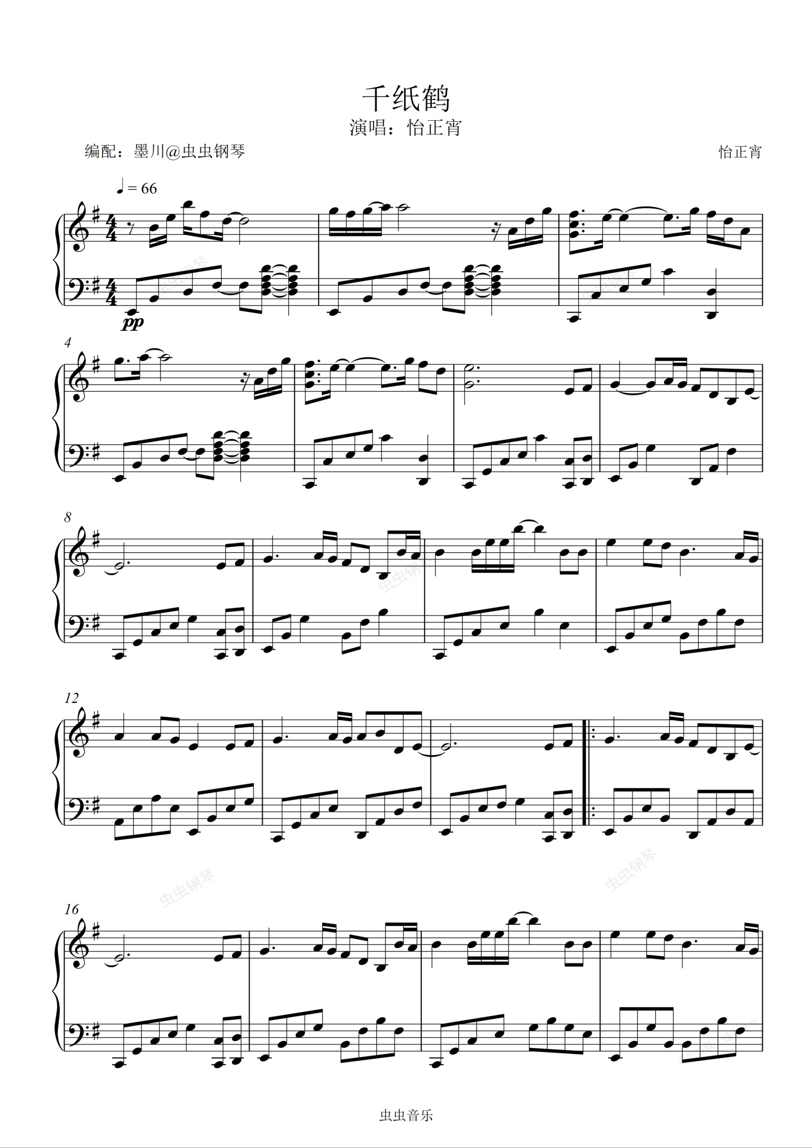 钢琴谱:千纸鹤—怡正宵—G调编配直播视奏版