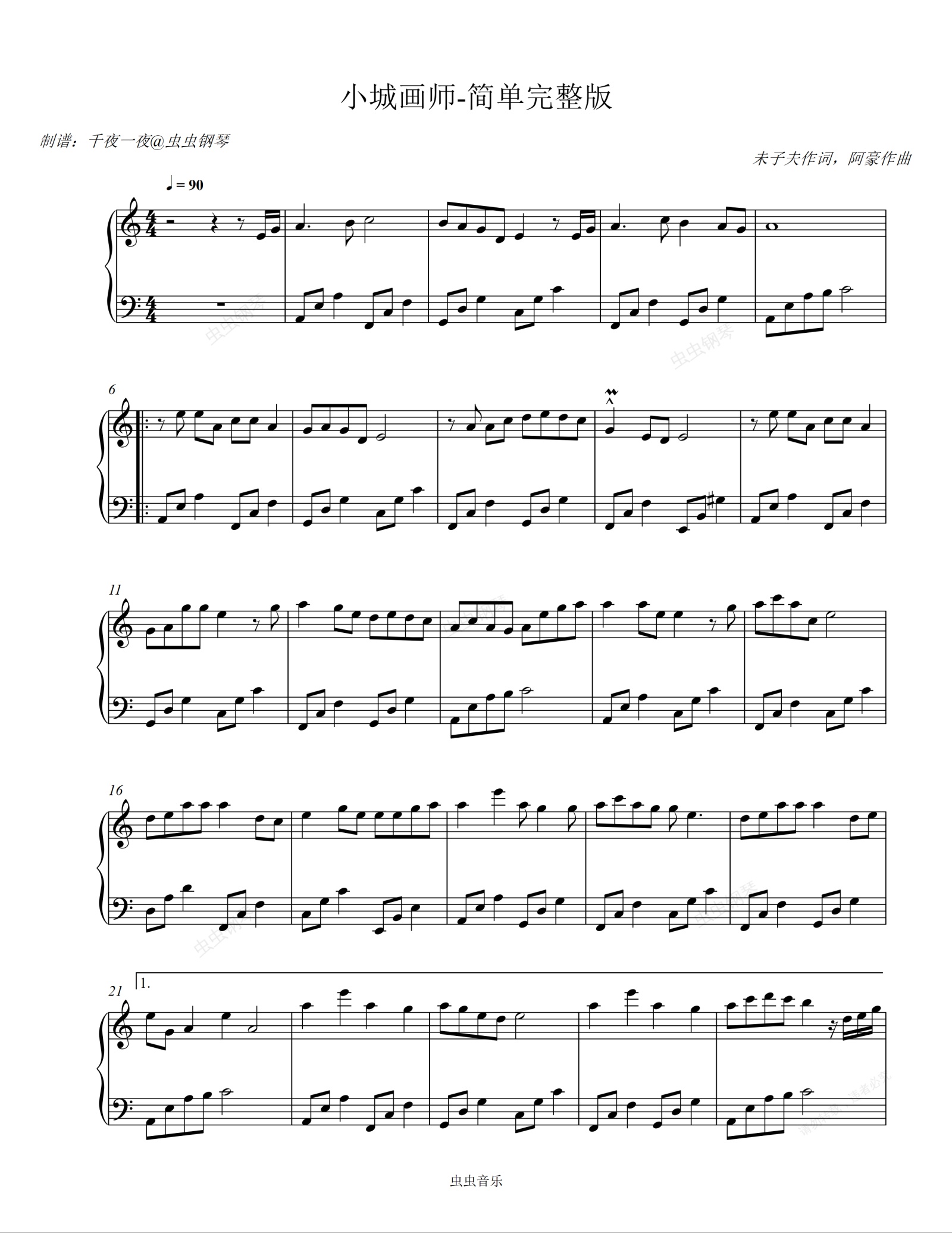 钢琴谱:键盘钢琴】小城画师 | 古风的感觉就是美美的啊