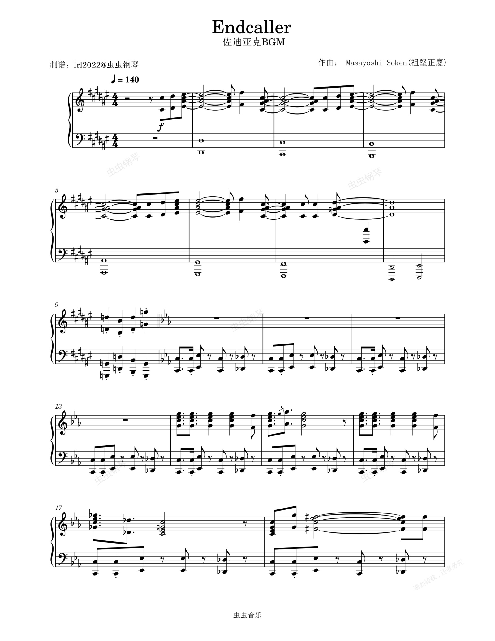 钢琴谱:Endcaller ~ゾディアーク討滅戦~佐迪亚克歼灭战BGM-祖堅正慶