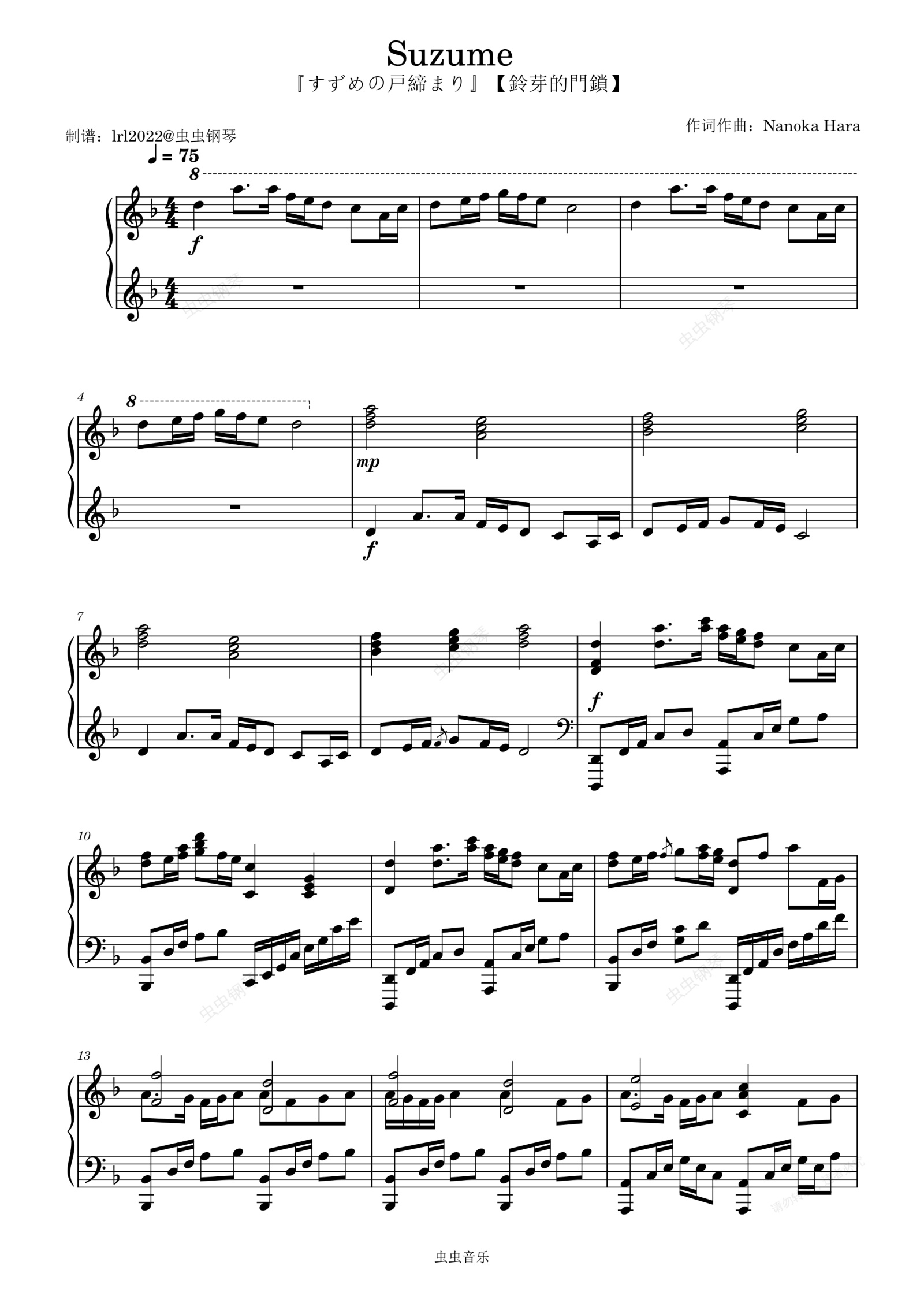 钢琴谱:Suzume-铃芽户缔OST - (Suzume no Tojimari)