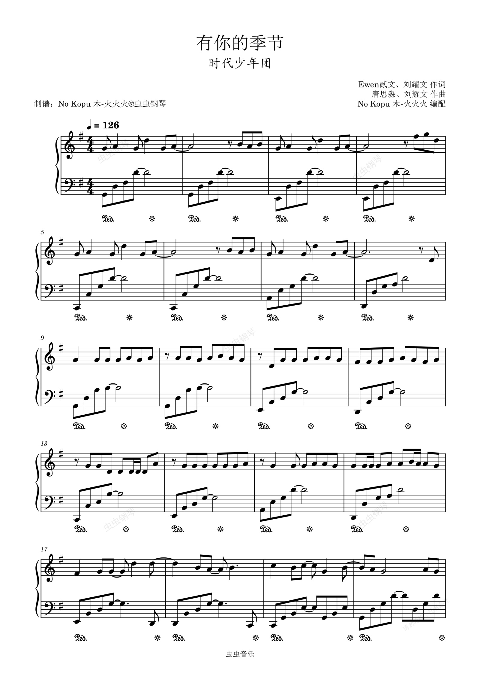 钢琴谱:完整原调G《有你的季节》时代少年团