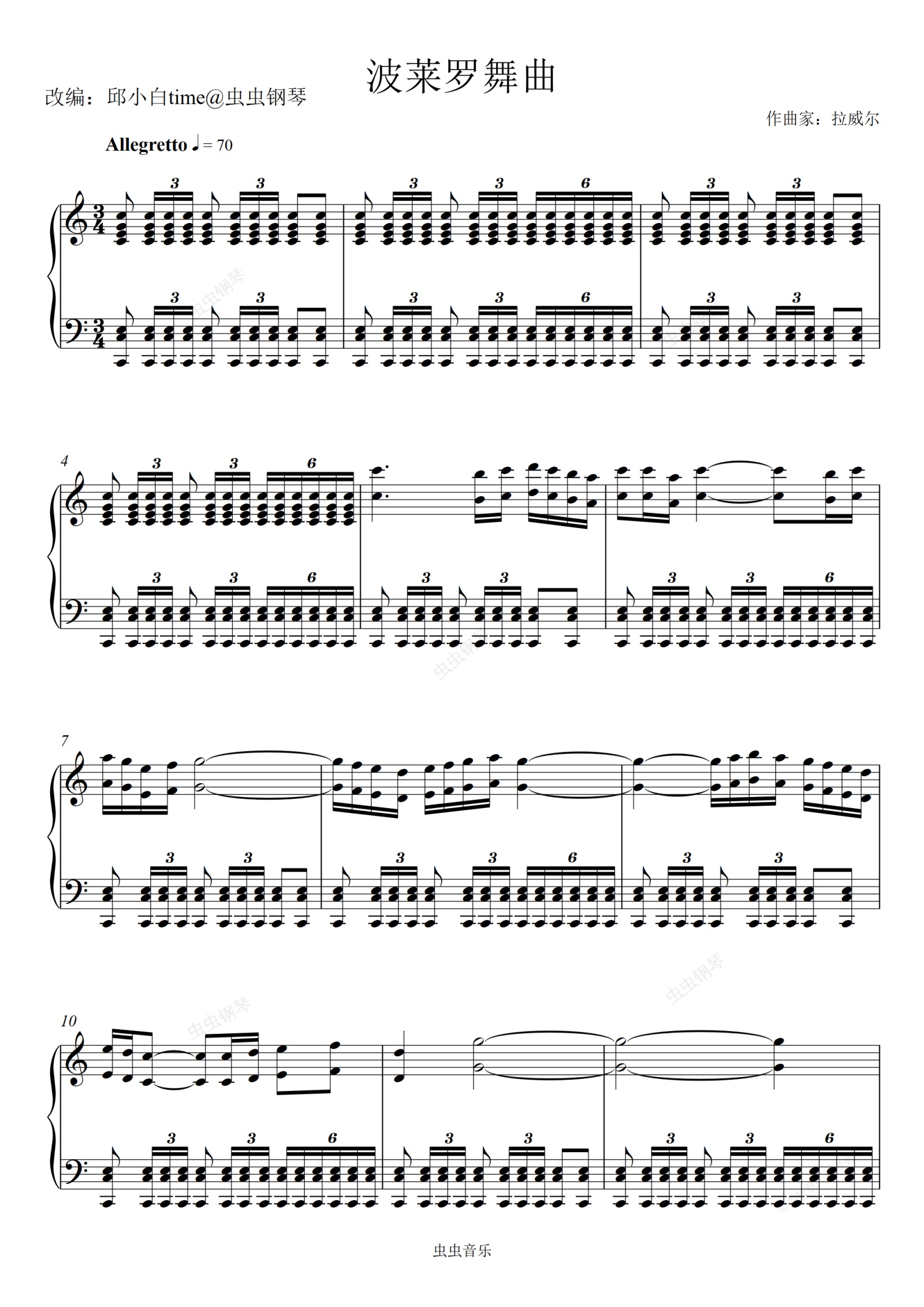 钢琴谱:拉威尔—波莱罗舞曲(高度还原)数码宝贝