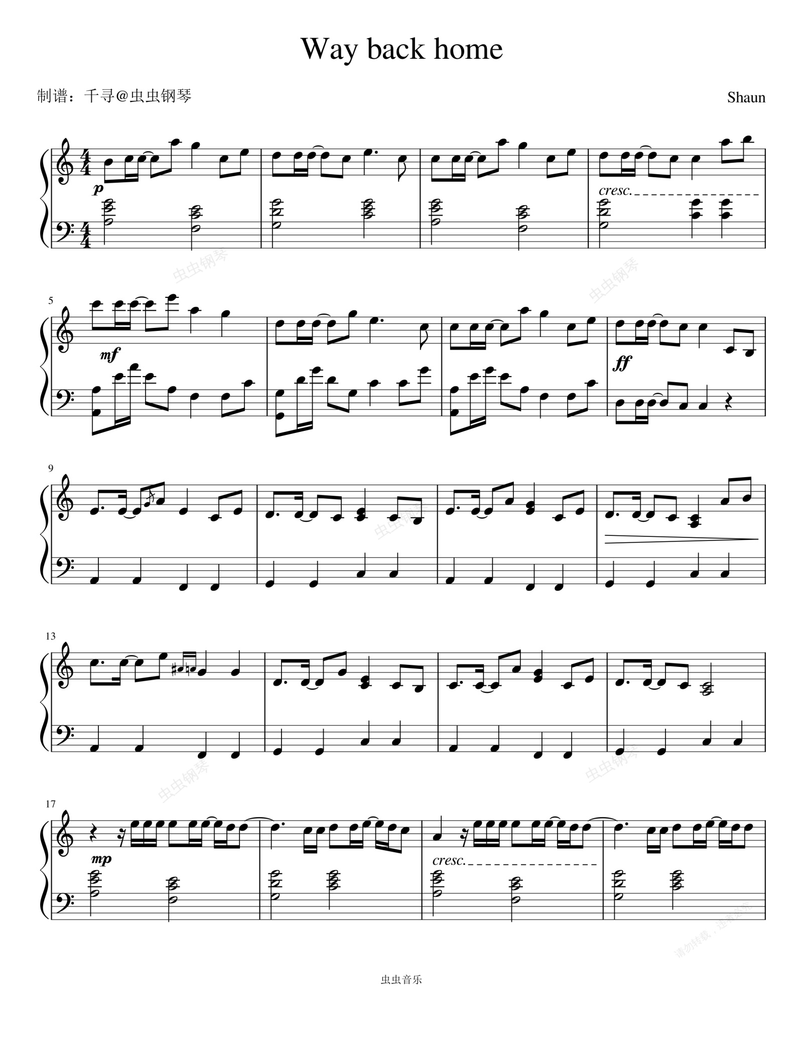 钢琴谱:【抖音热门歌曲】Way Back Home - SHAUN (숀)