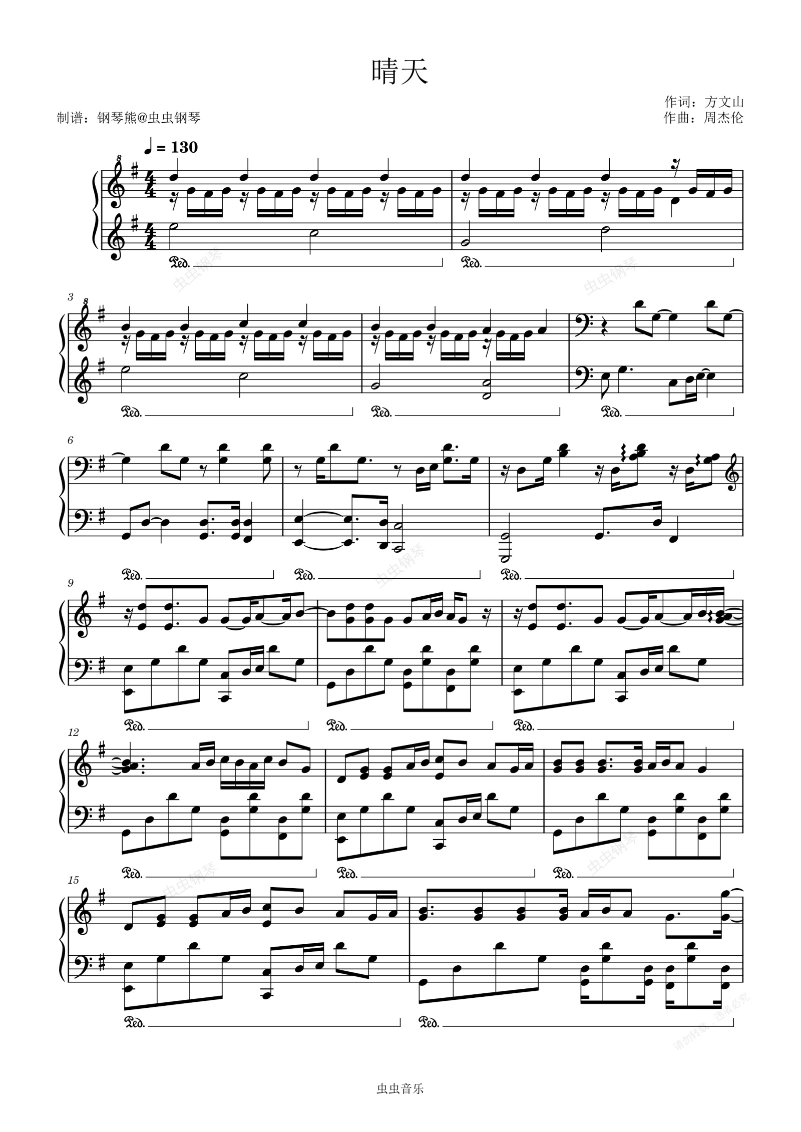 钢琴谱:毕生心血《晴天》古典极限改编版~