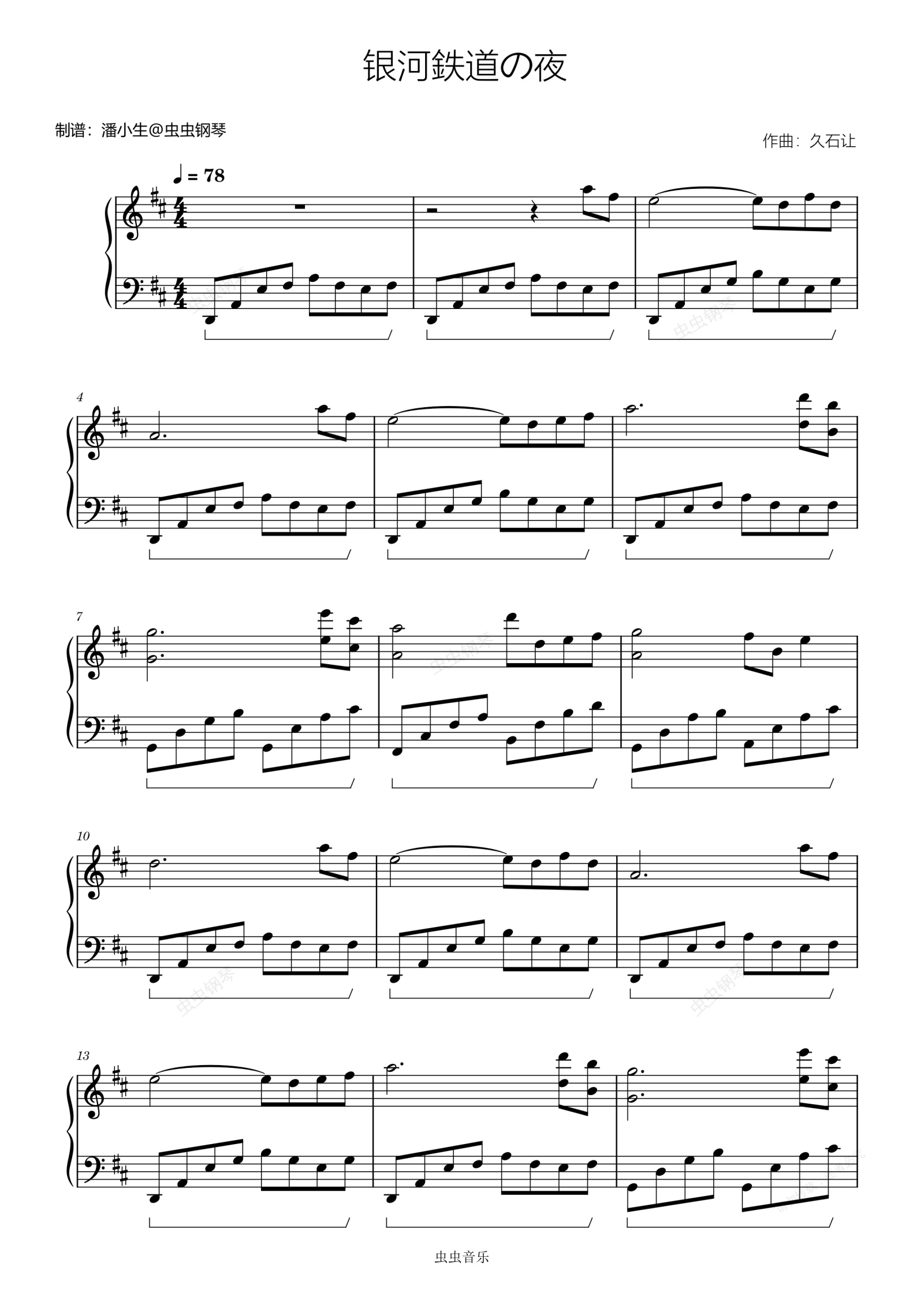 钢琴谱:银河铁道之夜,久石让,D调,银河鉄道の夜
