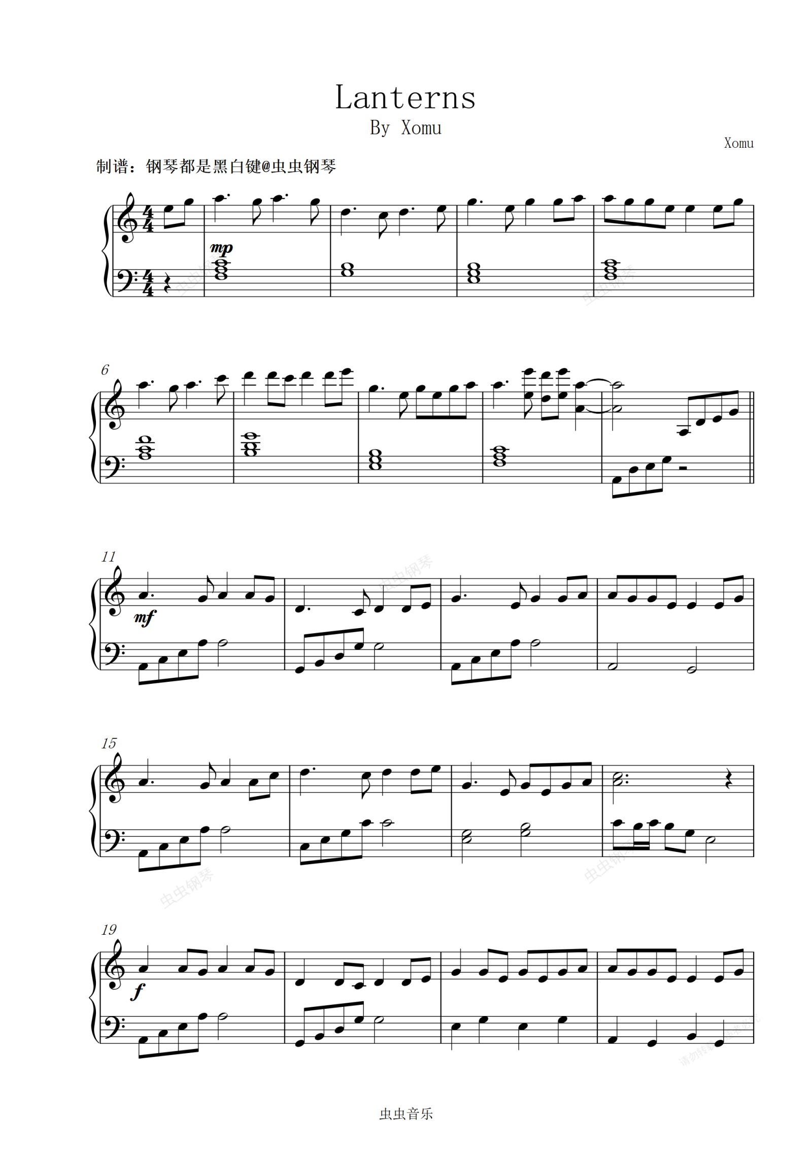 钢琴谱:Lanterns(Xomu)有一种生在盛世的感觉