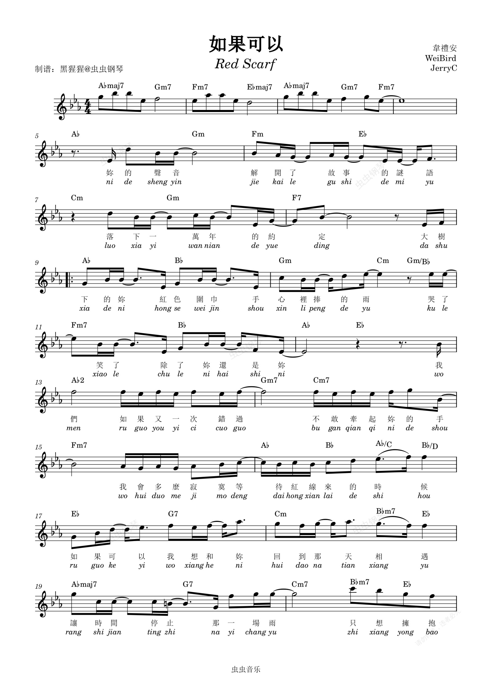 钢琴谱:韦礼安-Eb调 《如果可以》【带歌词】