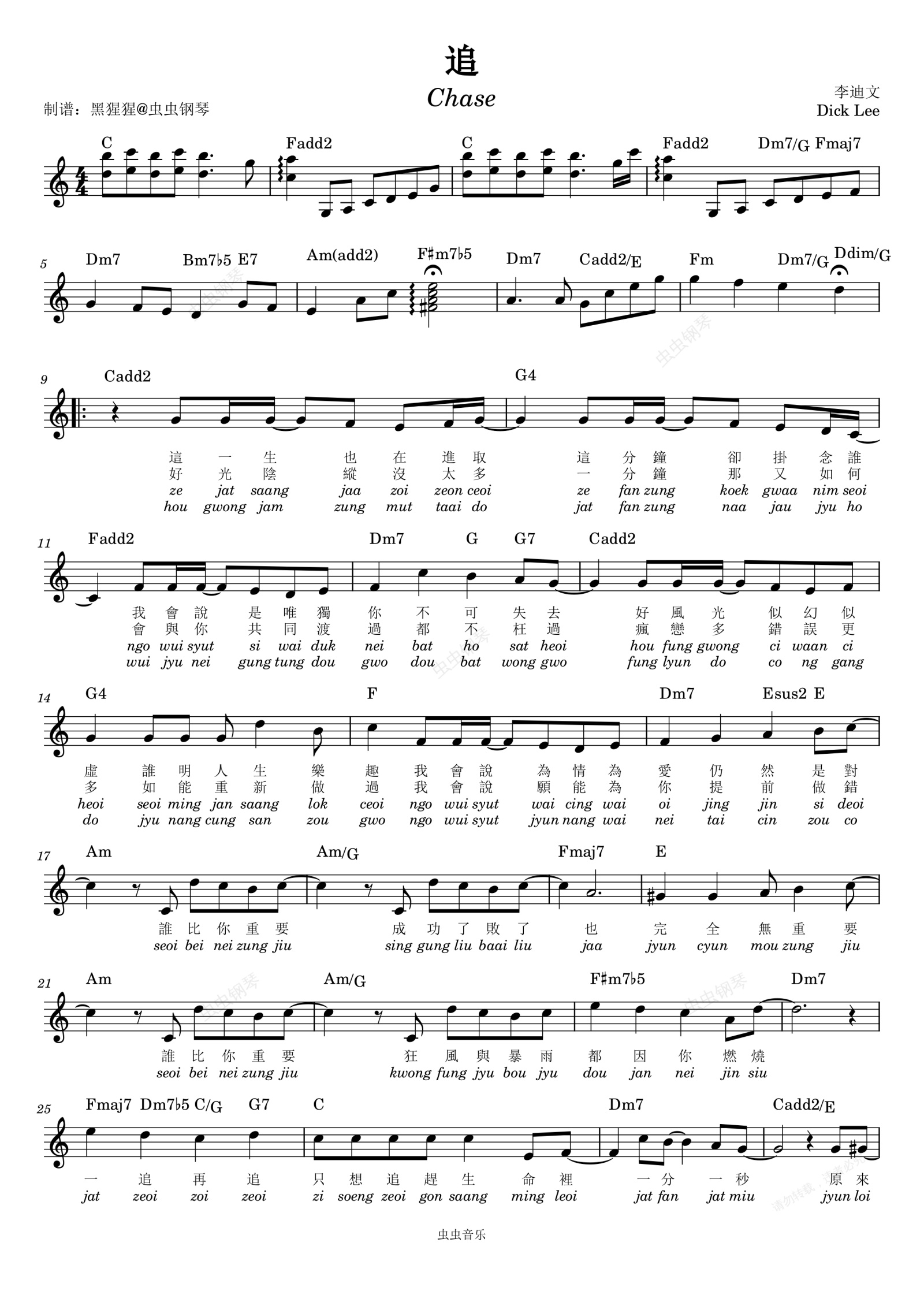 钢琴谱:张国荣-C调 《追》【带歌词】