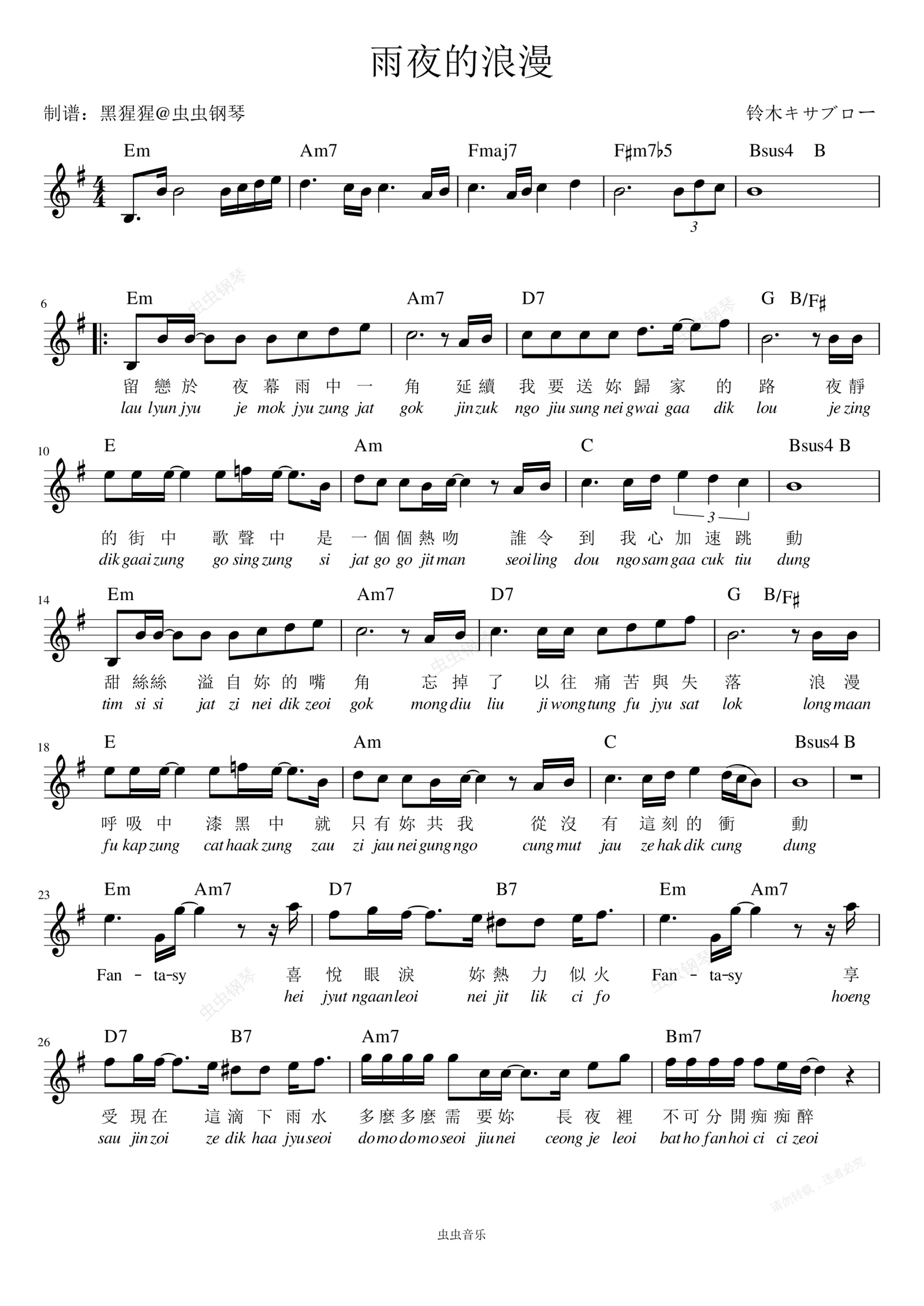 钢琴谱:谭咏麟-G调 《雨夜的浪漫》【带歌词】