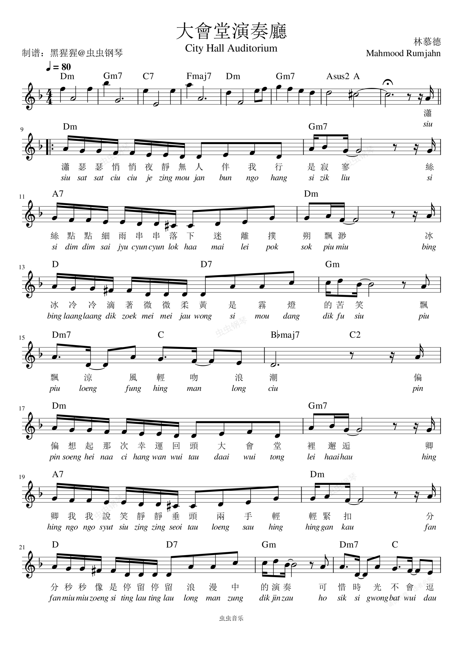 钢琴谱:李克勤-F调 《大会堂演奏厅》【带歌词】