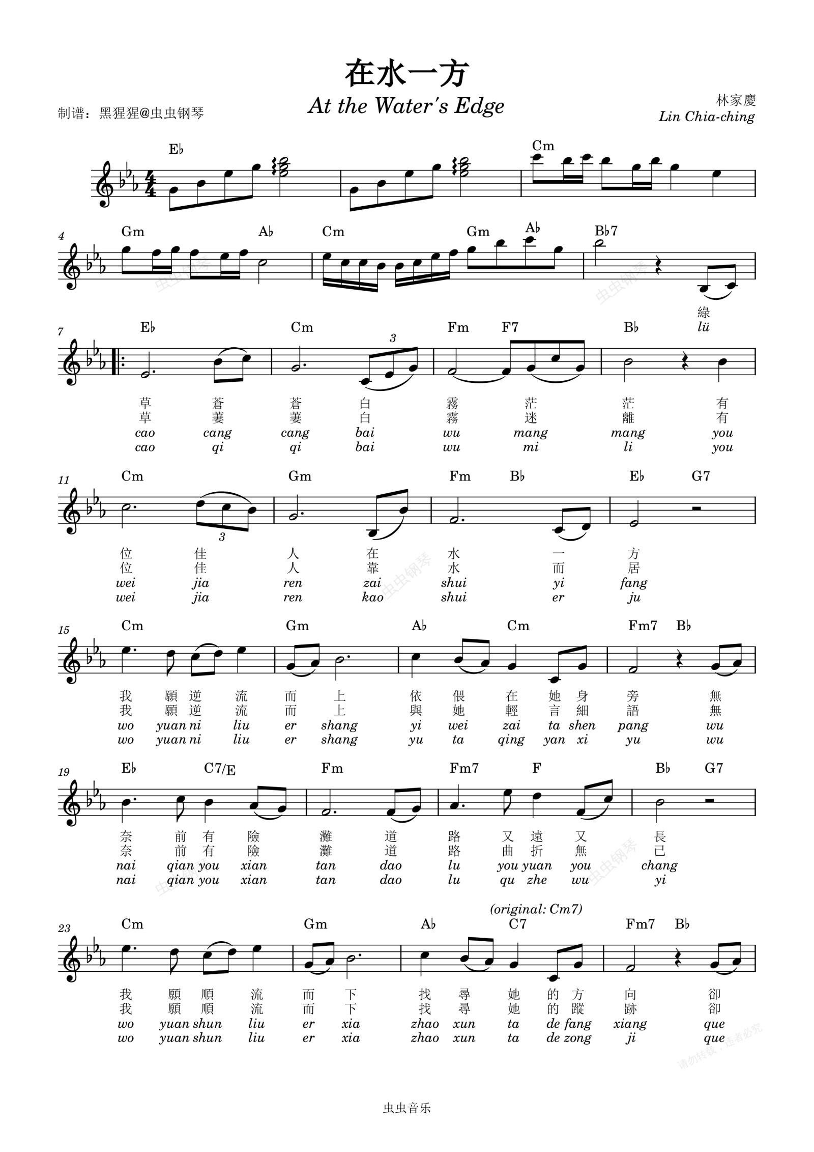 钢琴谱:高凌风-Eb调 《在水一方》【带歌词】