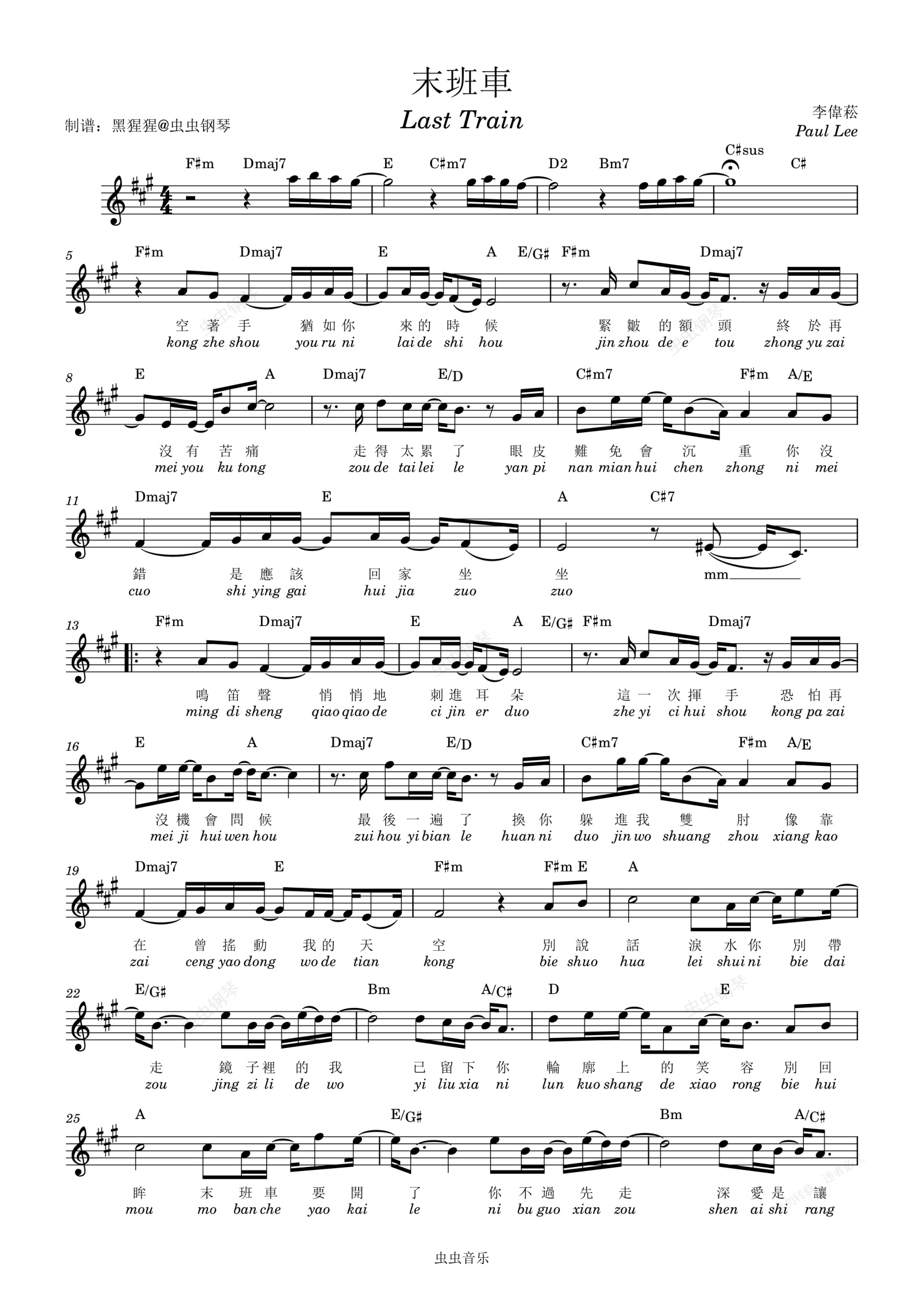 钢琴谱:萧煌奇-A调 《末班车》【带歌词】