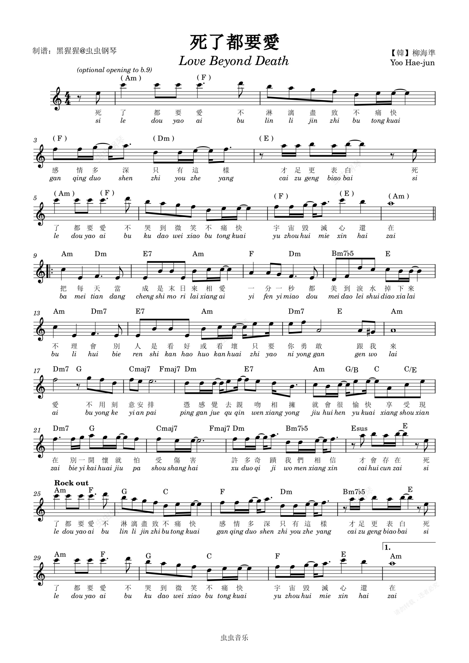 钢琴谱:信乐团-C调 《死了都要爱》【带歌词】
