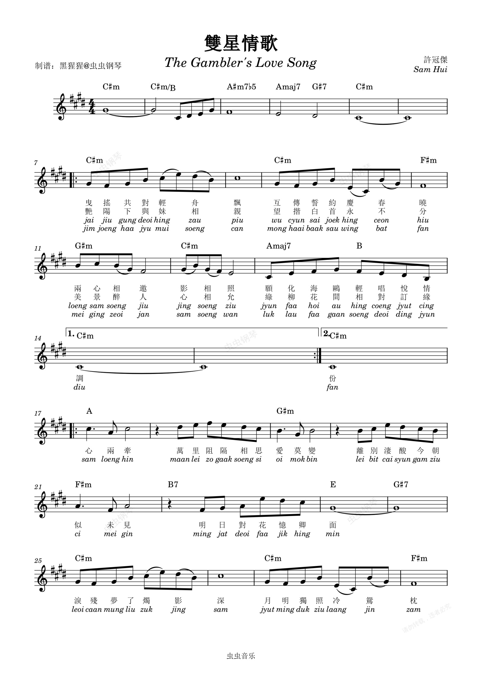 钢琴谱:许冠杰-E调 《双星情歌》【带歌词】