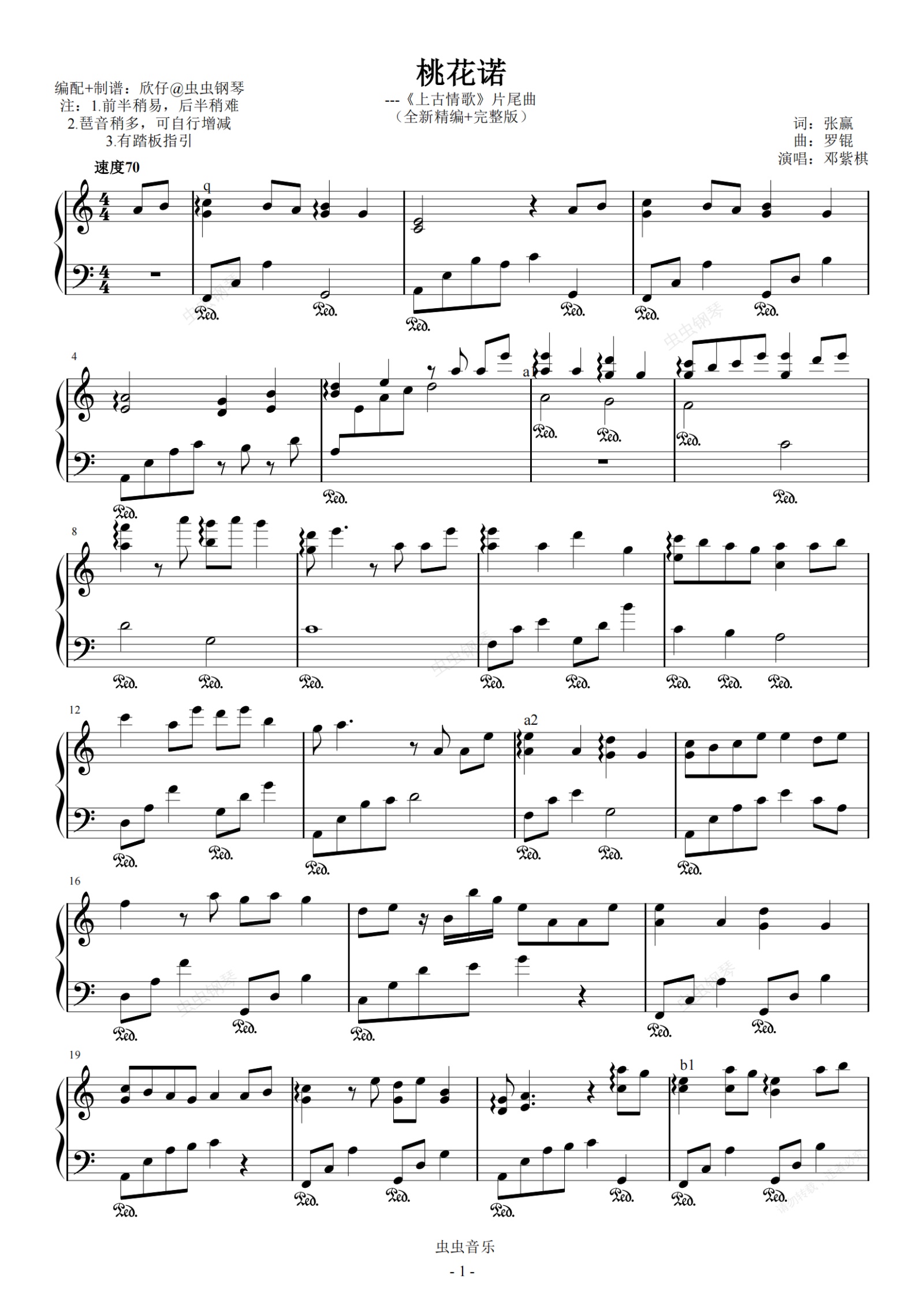 钢琴谱:邓紫棋-a《桃花诺》(《上古情歌》片尾曲、完整版)