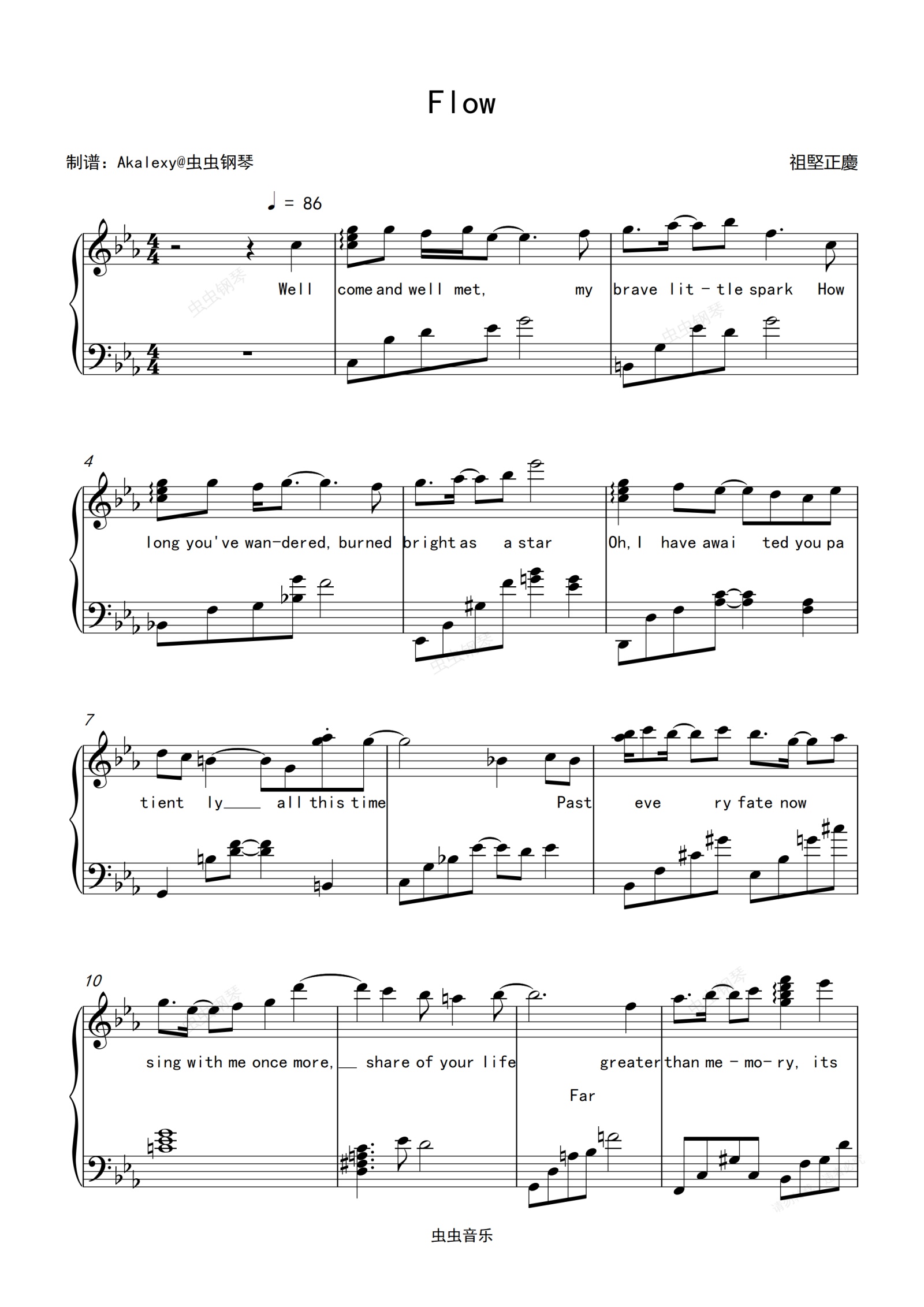 钢琴谱:Flow(英语弹唱版)