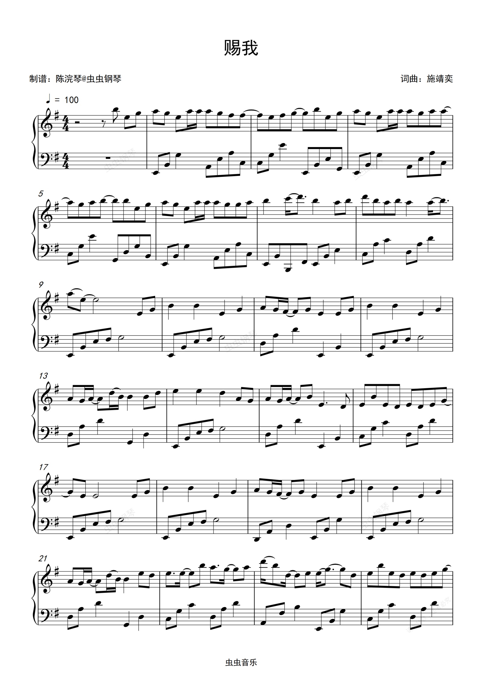 钢琴谱:赐我钢琴五线谱(极简版)_G调钢琴五线谱