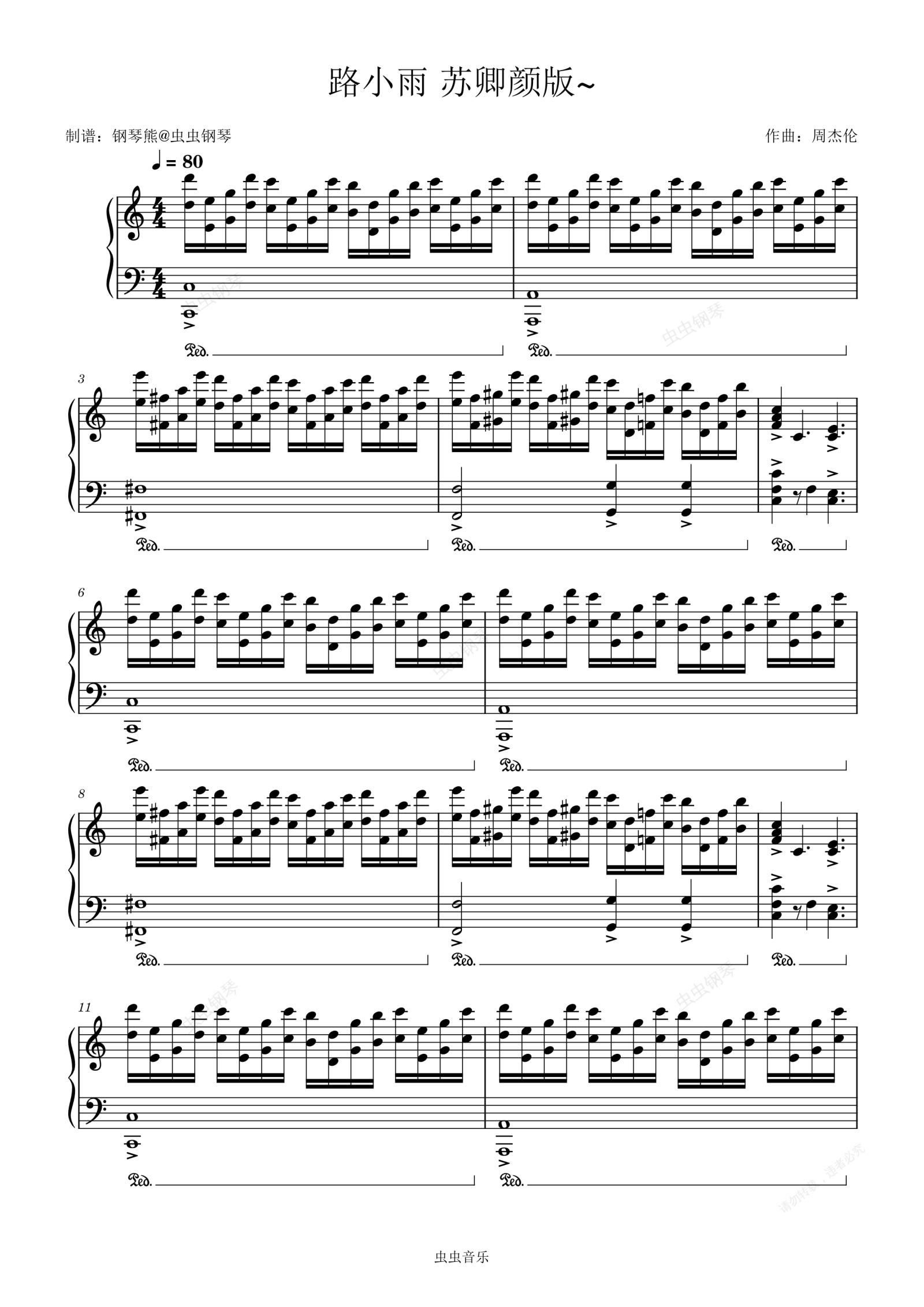 钢琴谱:《路小雨》抖音苏卿颜版本~