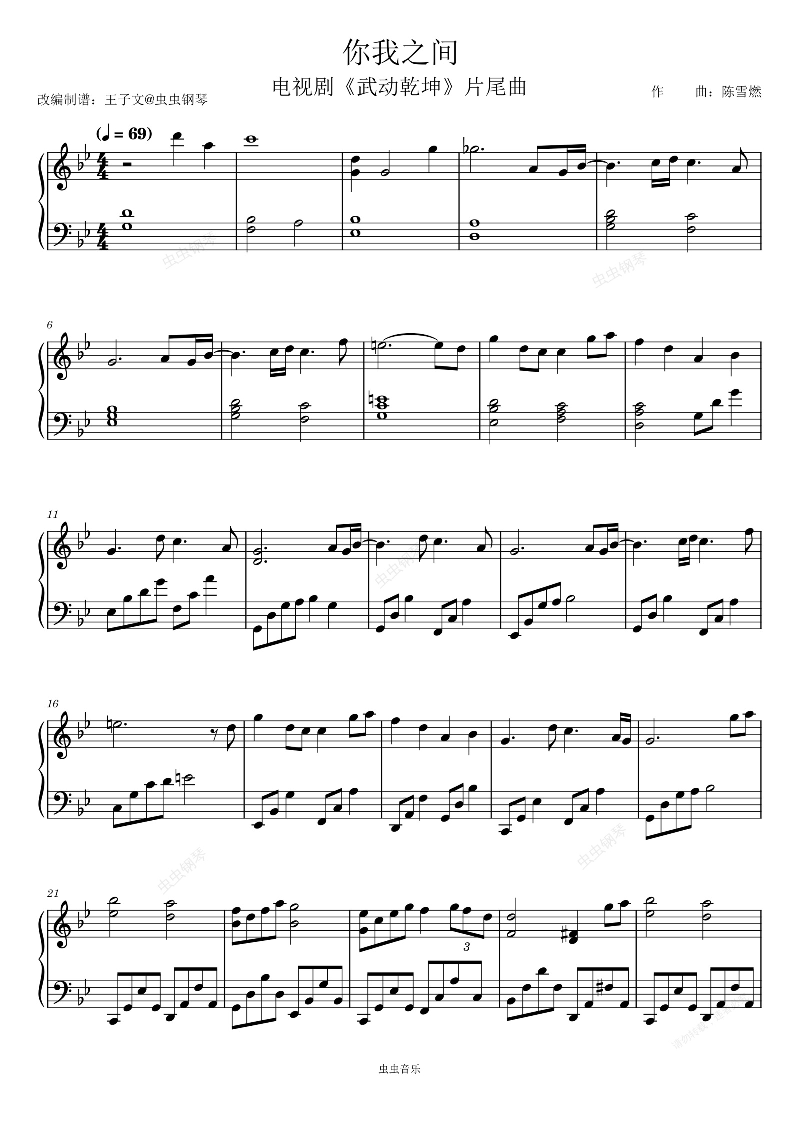 钢琴谱:你我之间-武动乾坤-片尾曲