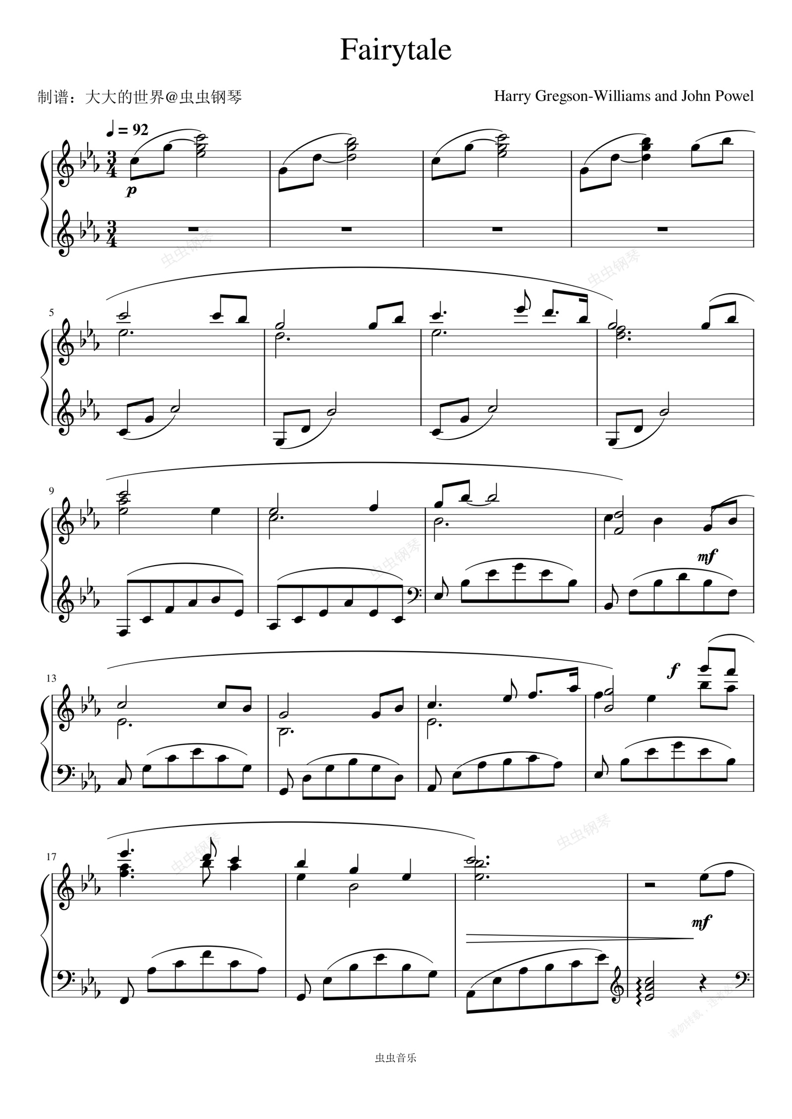钢琴谱:《Fairytale》 - Harry Gregson-Williams and John Powel
