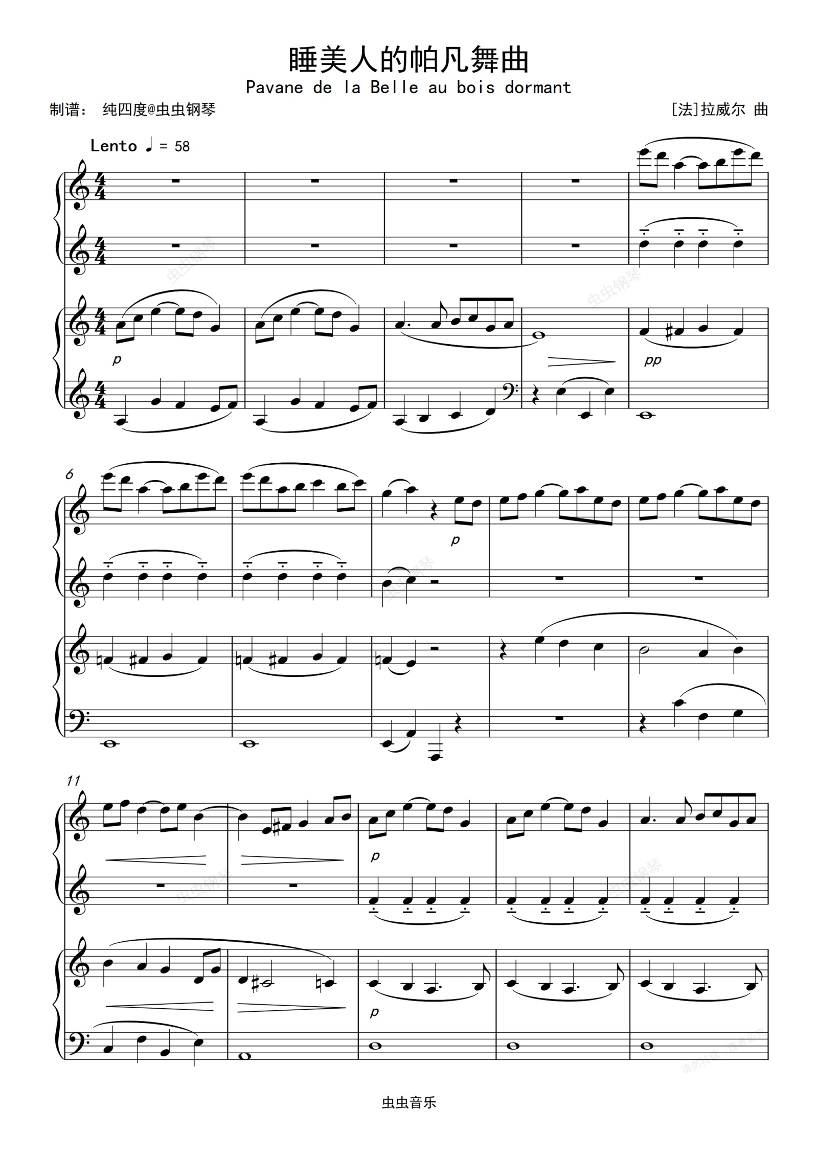 钢琴谱:【鹅妈妈组曲】睡美人的帕凡舞曲(四手联弹)Pavane de la Belle au bois dormant