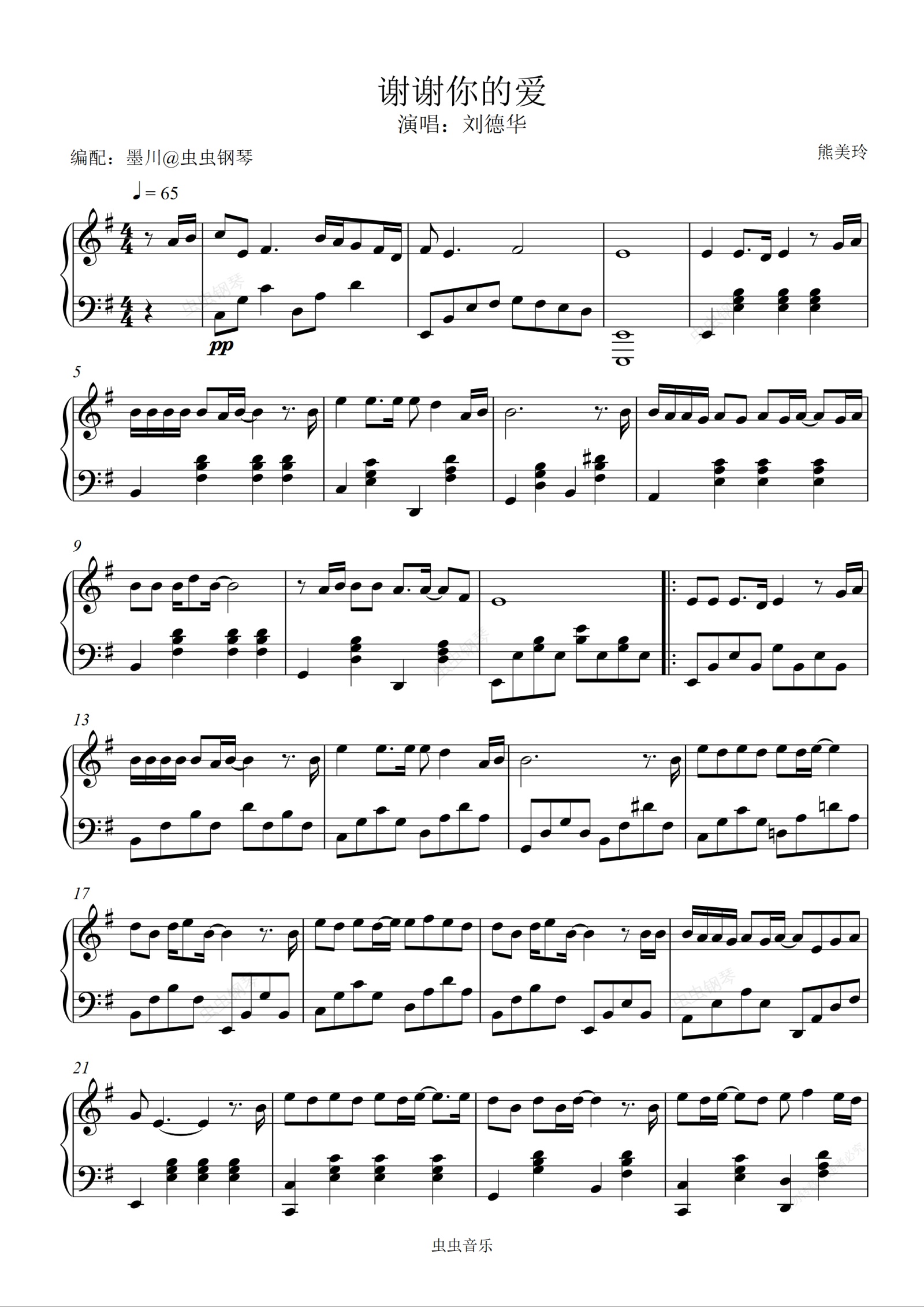 钢琴谱:谢谢你的爱—刘德华—G调编配