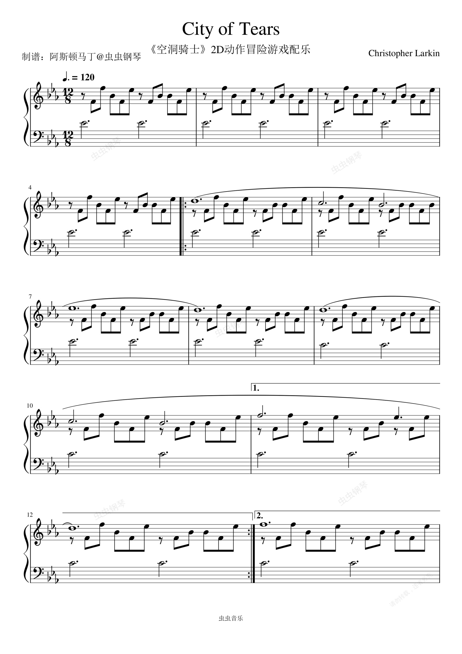 钢琴谱:City of Tears - 《空洞骑士》2D动作冒险游戏配乐