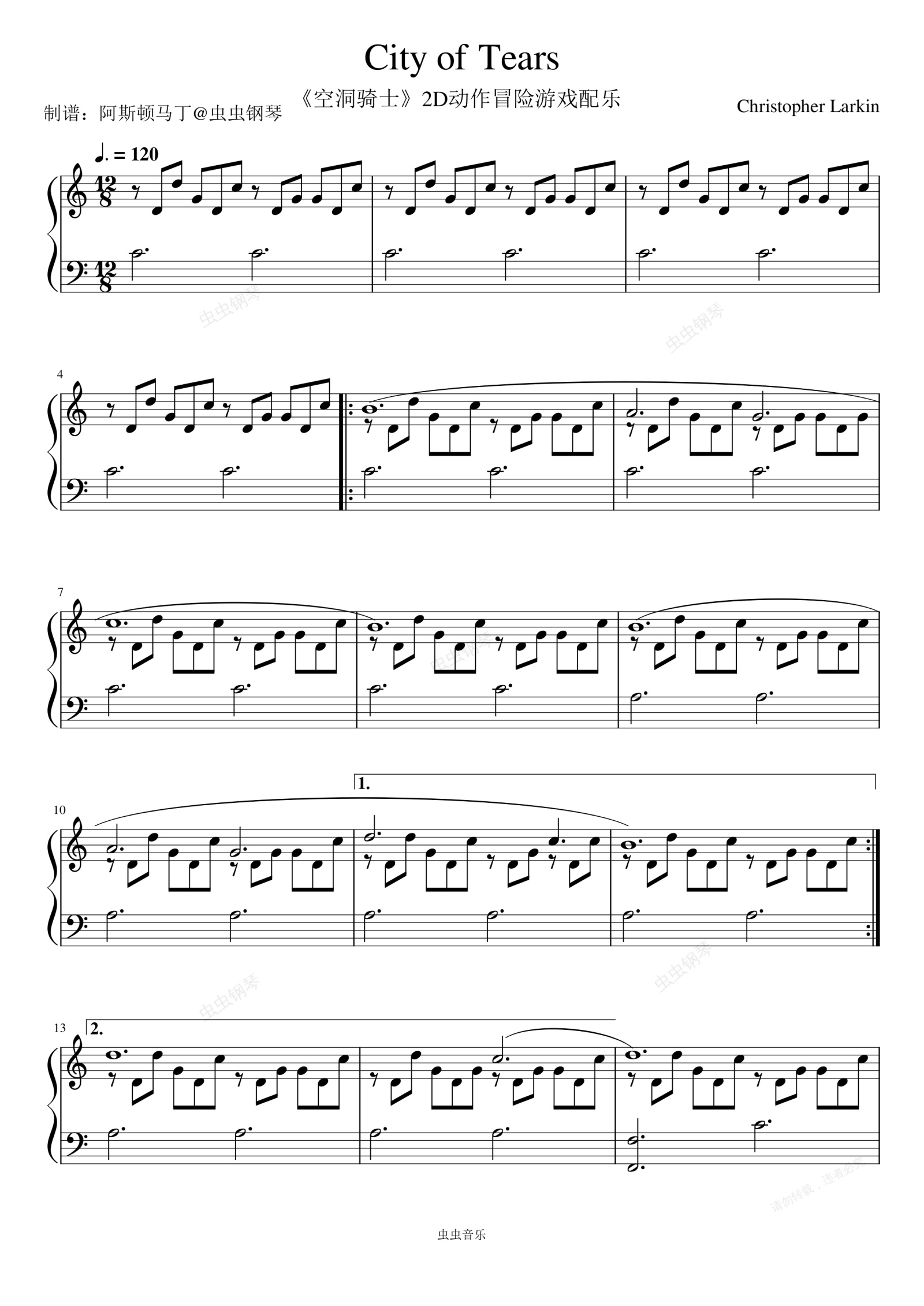 钢琴谱:City of Tears - 《空洞骑士》2D动作冒险游戏配乐