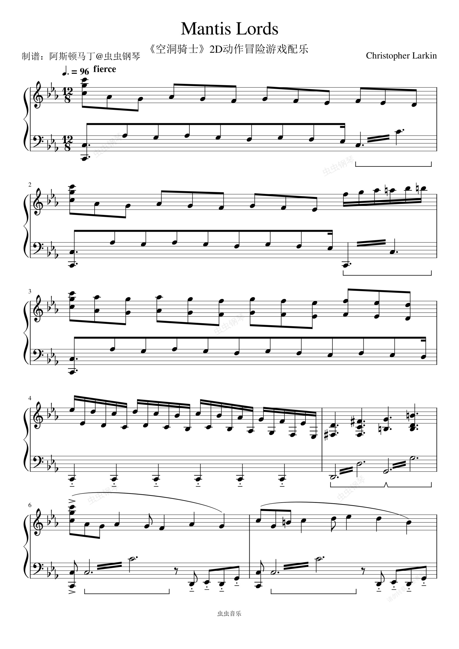 钢琴谱:Mantis Lords - 《空洞骑士》2D动作冒险游戏配乐