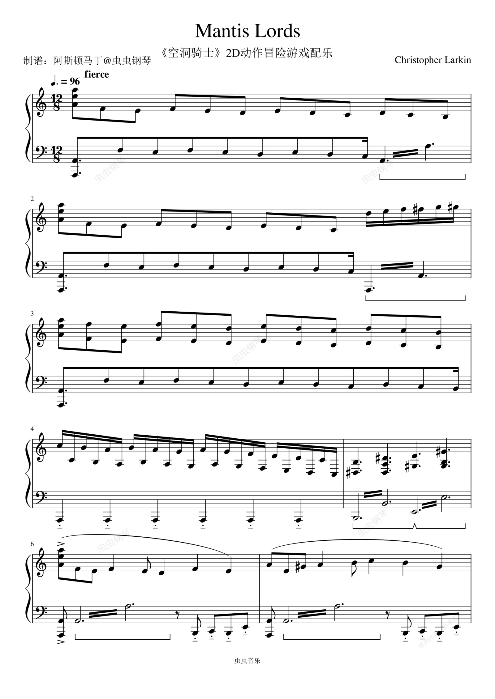 钢琴谱:Mantis Lords - 《空洞骑士》2D动作冒险游戏配乐