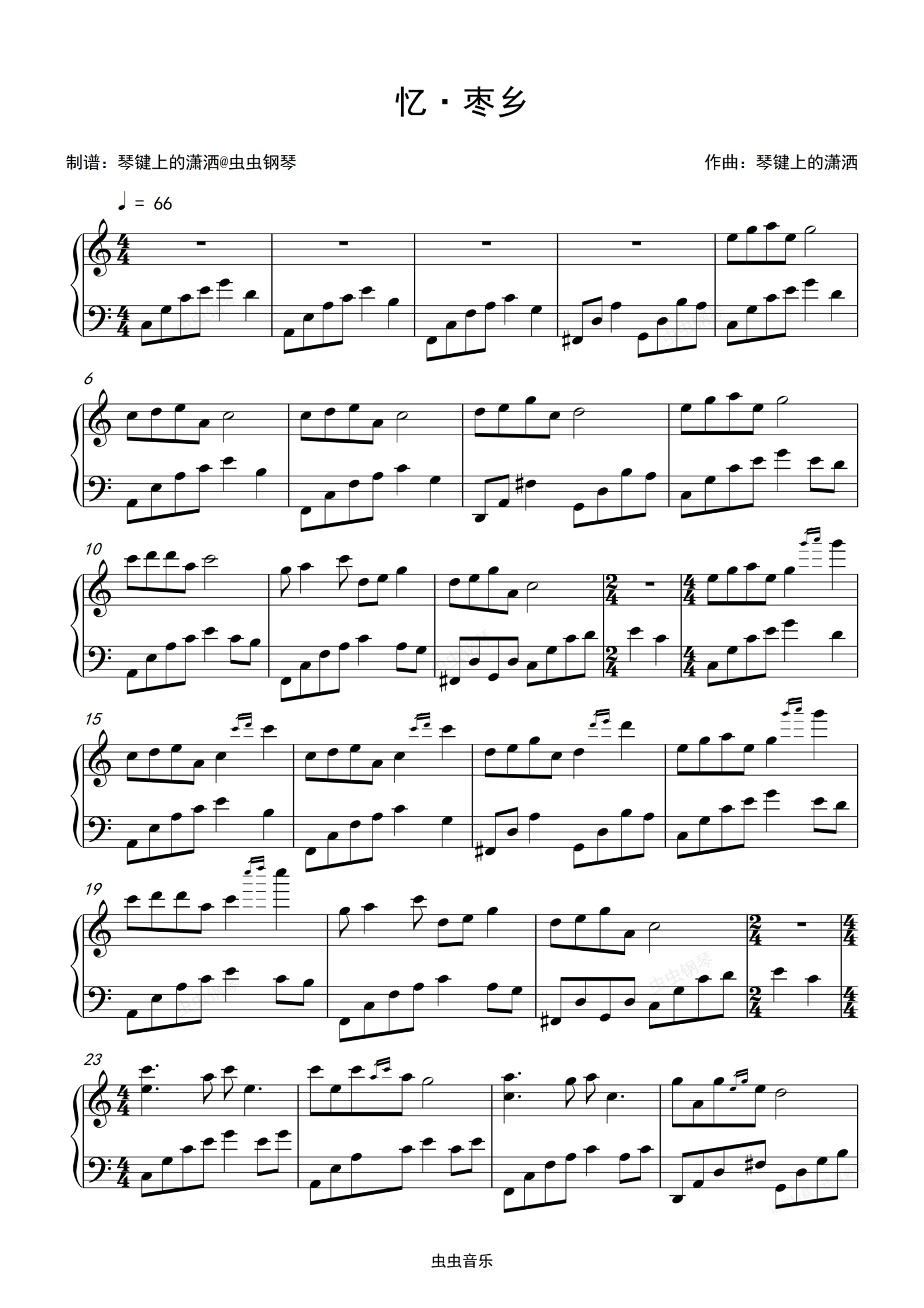 钢琴谱:《忆·枣乡》-琴键上的潇洒-C调独奏