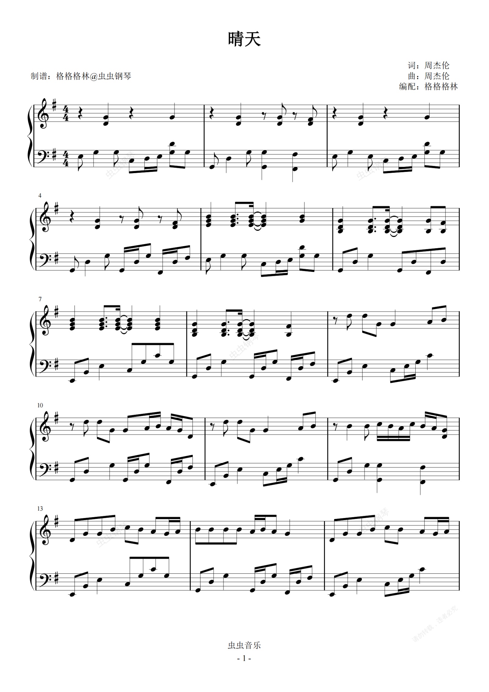 钢琴谱:晴天
