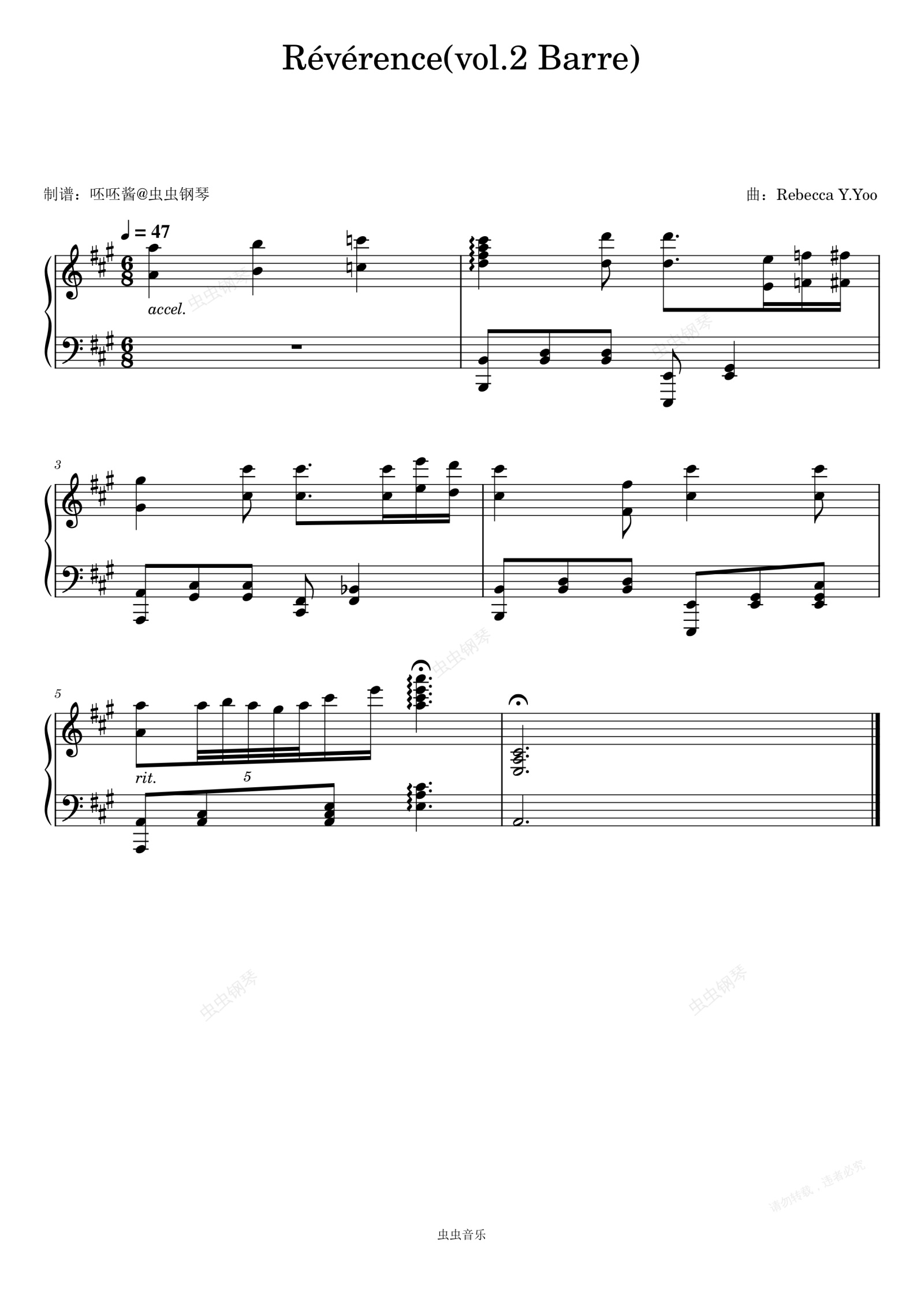 钢琴谱:Révérence(vol.2 Barre)-独奏还原-A调
