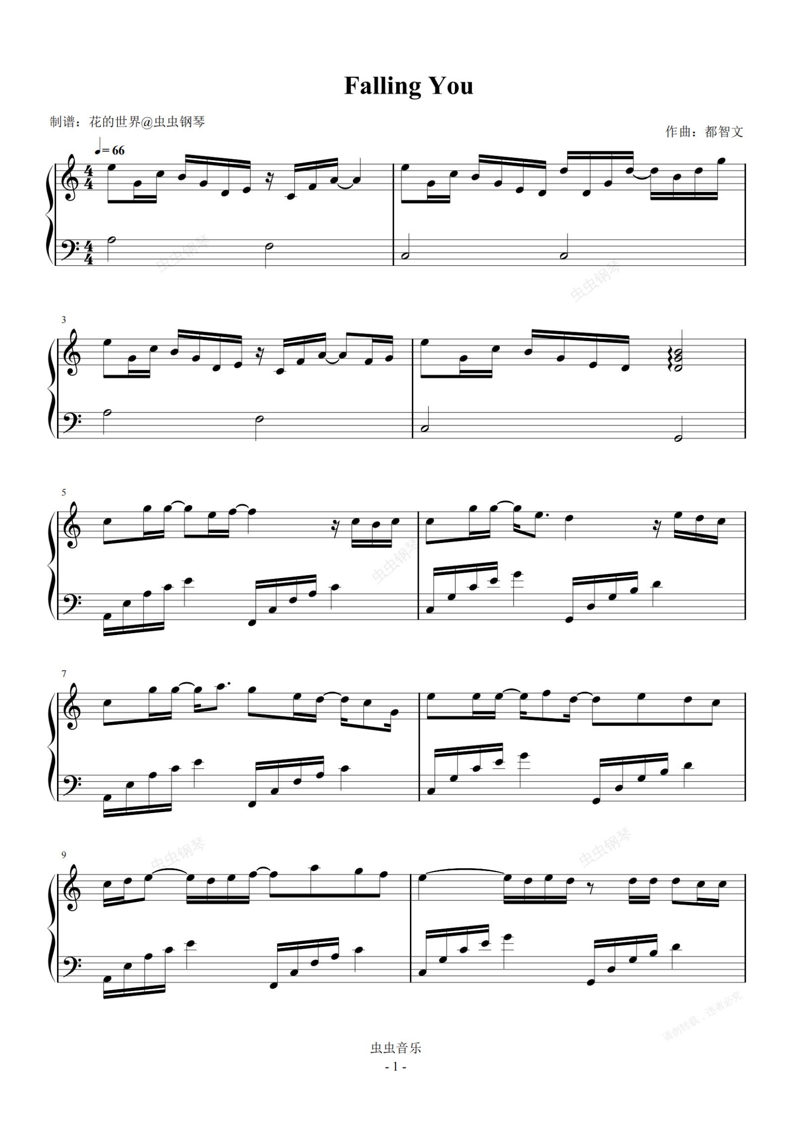 钢琴谱:Falling you  C调简易版 点燃我,温暖你
