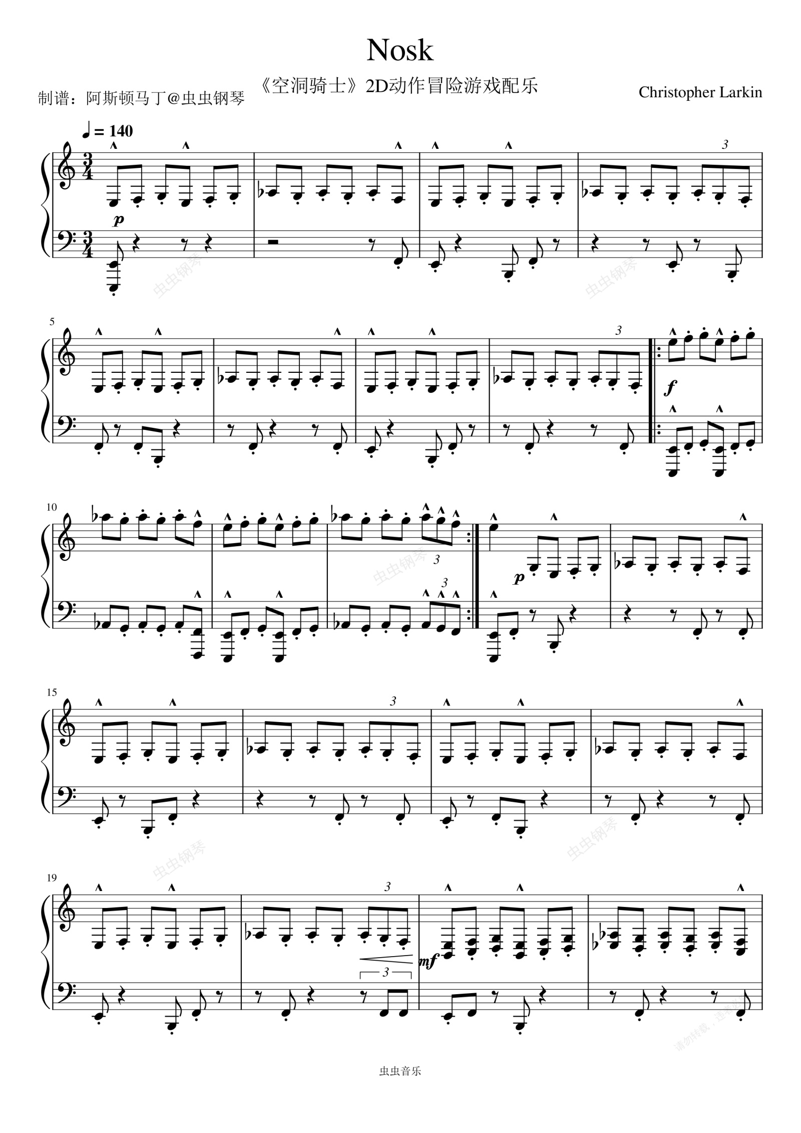 钢琴谱:Nosk - 《空洞骑士》2D动作冒险游戏配乐